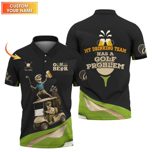 Golf And Beer Custom Polo Shirts Grim Reaper, Team Golf Polos, Golf Gifts For Men