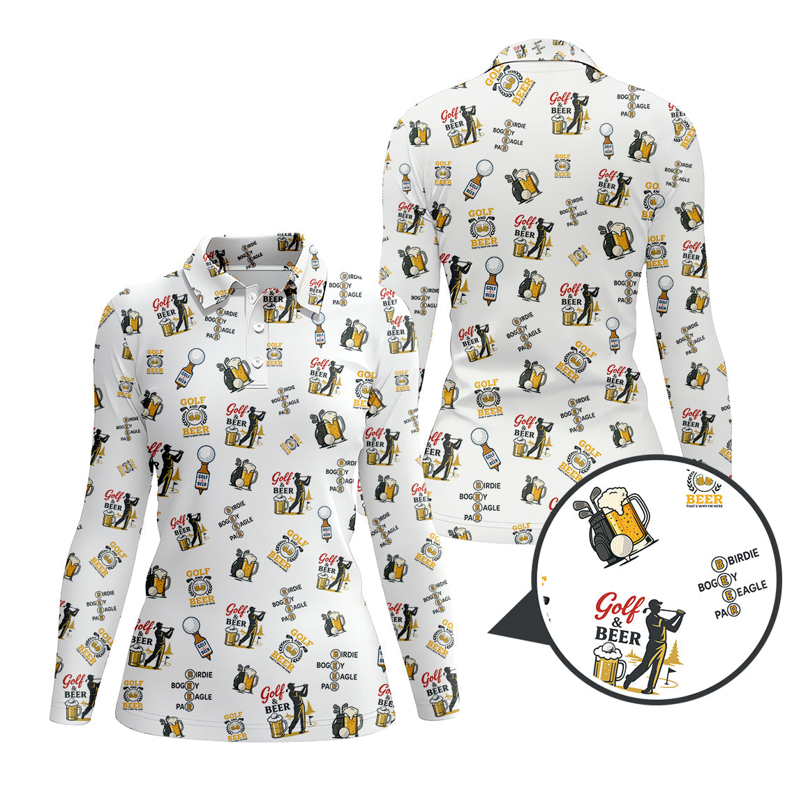 Golf and Beer Pattern Polos For Men, Funny Golf Shirt, Golf Gifts For Golfers