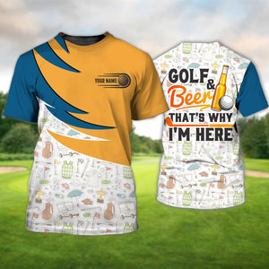 Golf And Beer That’s Why I’m Here, Personalized Name 3D Tshirt Gift For Golfer