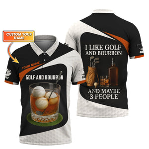Golf and Bourbon Shirt – I Like Golf and Maybe 3 People – Custom Name Funny Tee