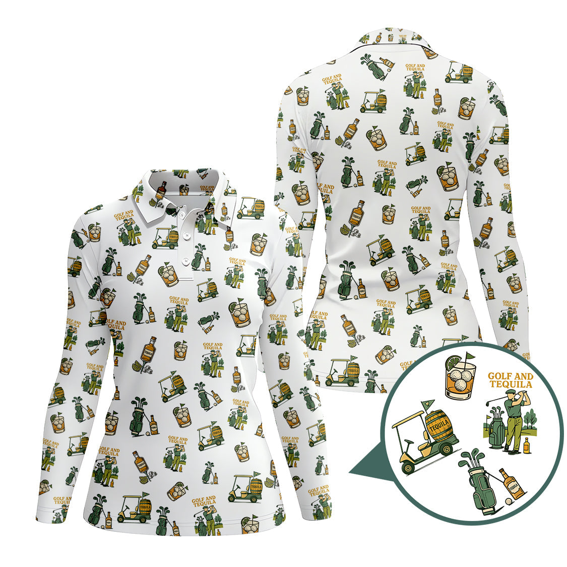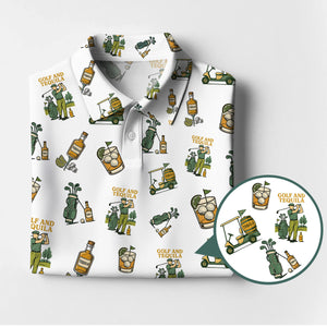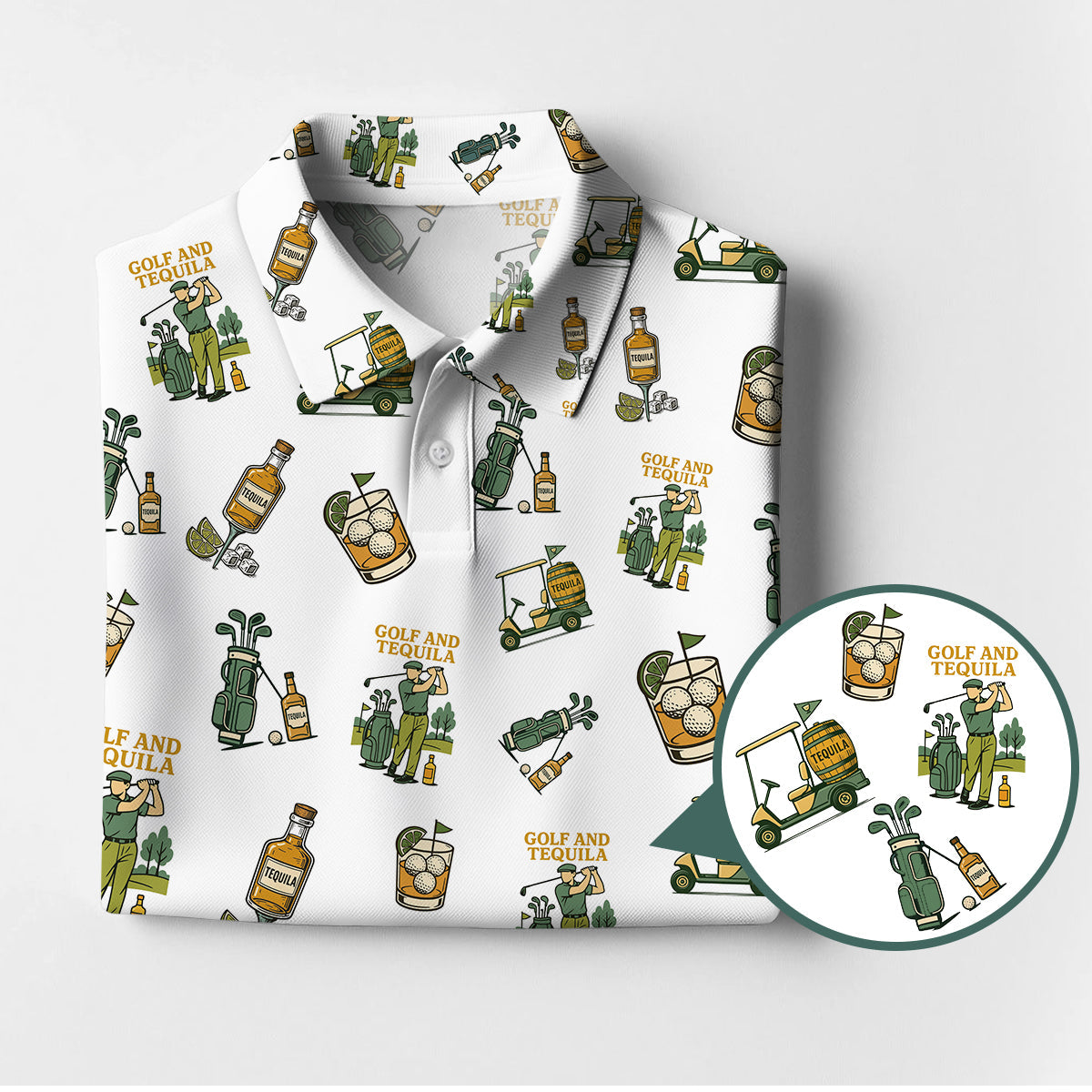 Golf and Tequila Pattern Golf Polos, Funny Whiskey Golf Shirt For Golfers, Golf Shirts For Men