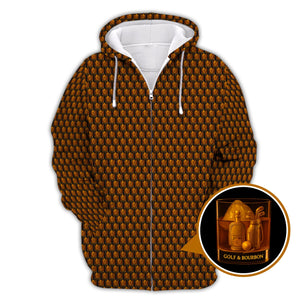 Golf & Bourbon Pattern Golf Shirt, Bourbon Golf Shirt For Men, Funny Men Golf Gift, Bourbon Golf Shirt For Golfers