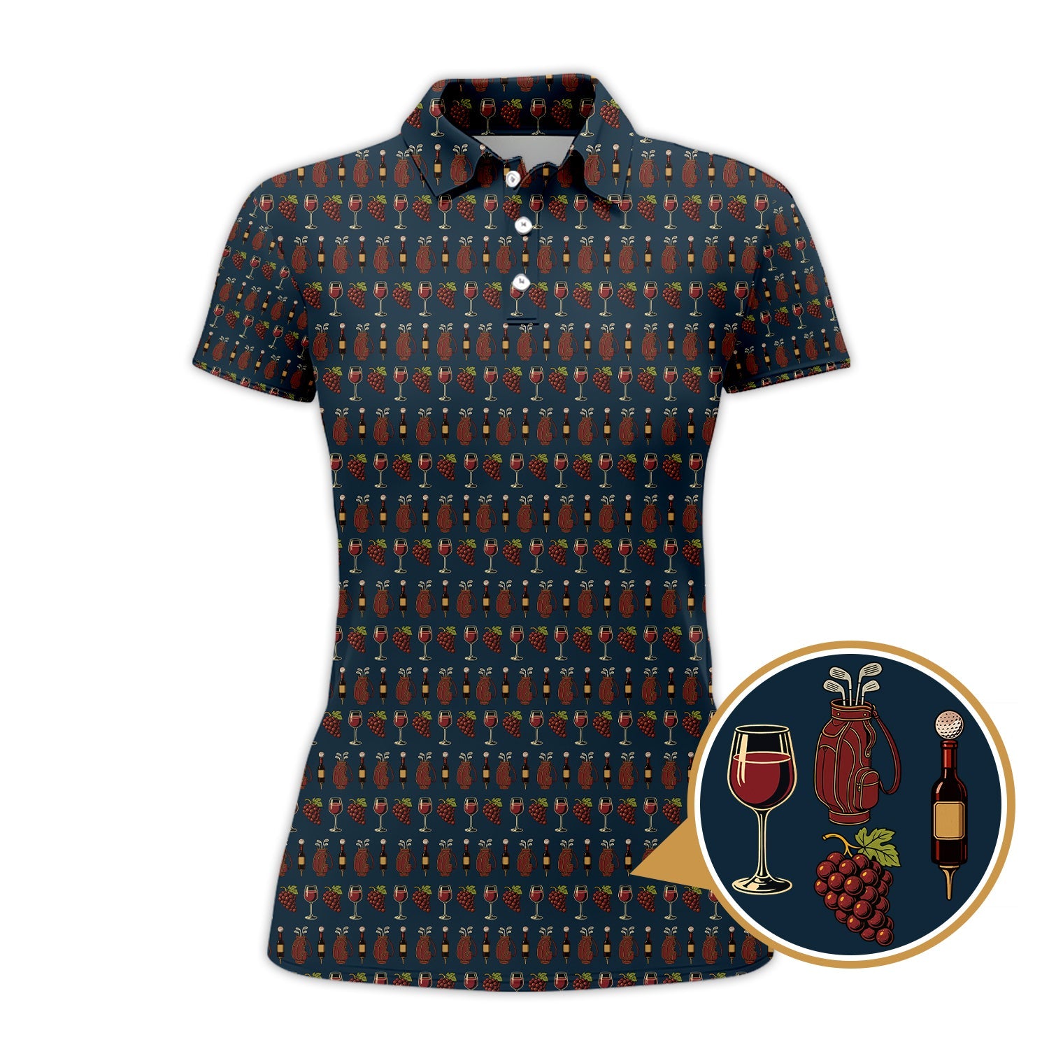 Golf Wine Pattern Golf Shirt, Women Golf Shirts For Wine Lovers, Golf Gift For Golfer