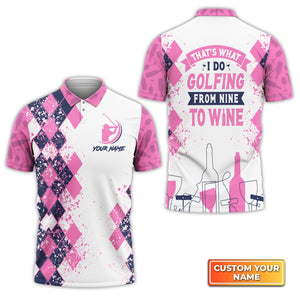 Golfing From Nine To Wine, Personalized Name 3D Polo Shirt Gift For Golfers