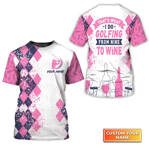Golfing From Nine To Wine, Personalized Name 3D Tshirt Gift For Golfer