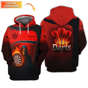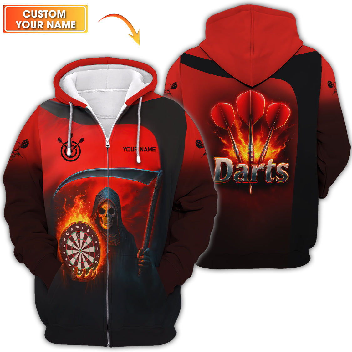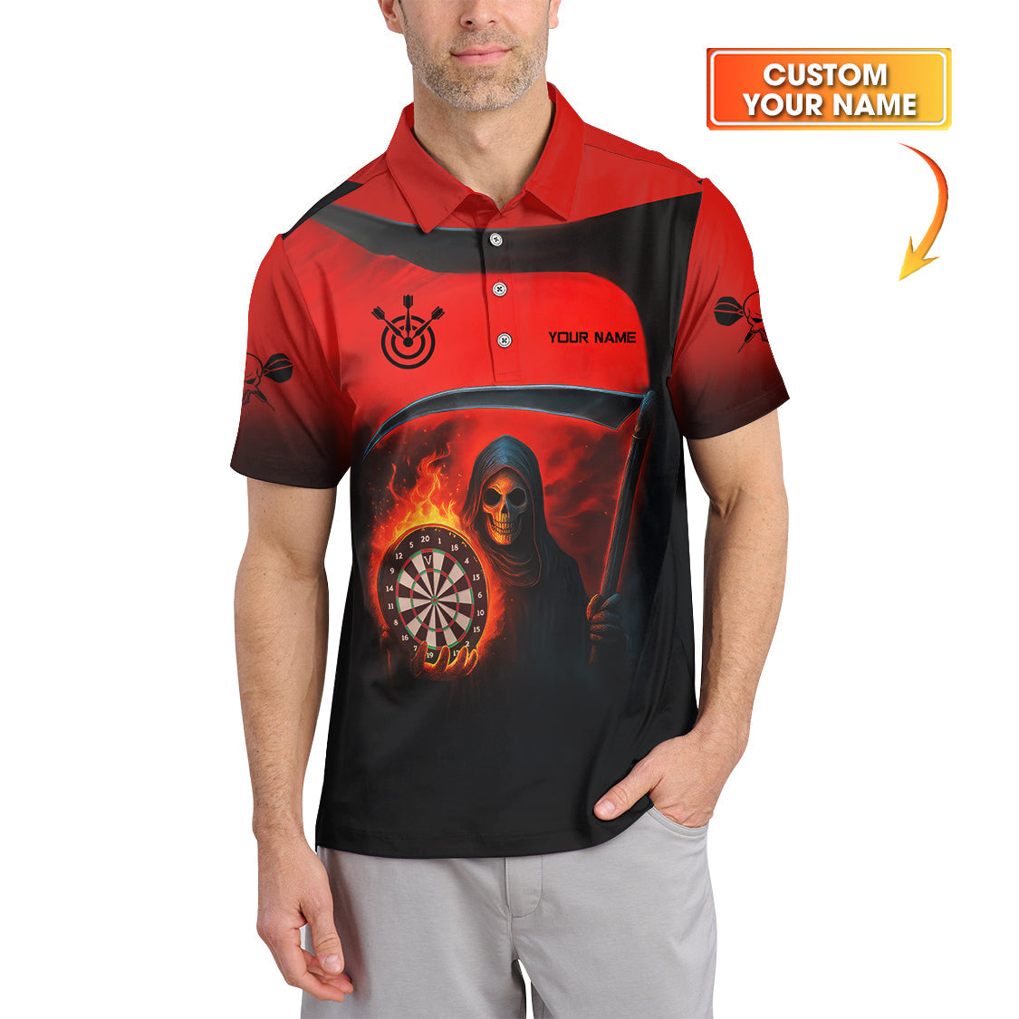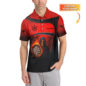 Grim Reaper Darts Jersey, Custom Name Flaming Dartboard Shirt, Halloween Dart Team Shirts for Players