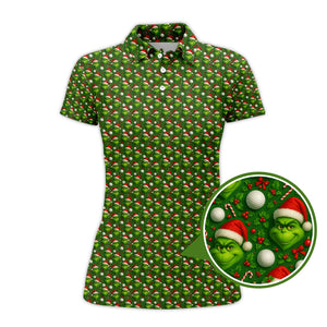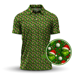 Grinch Golf Shirt For Golfer, Pattern Golf Shirt, Funny Golf Shirt For Men, Christmas Golf Shirt