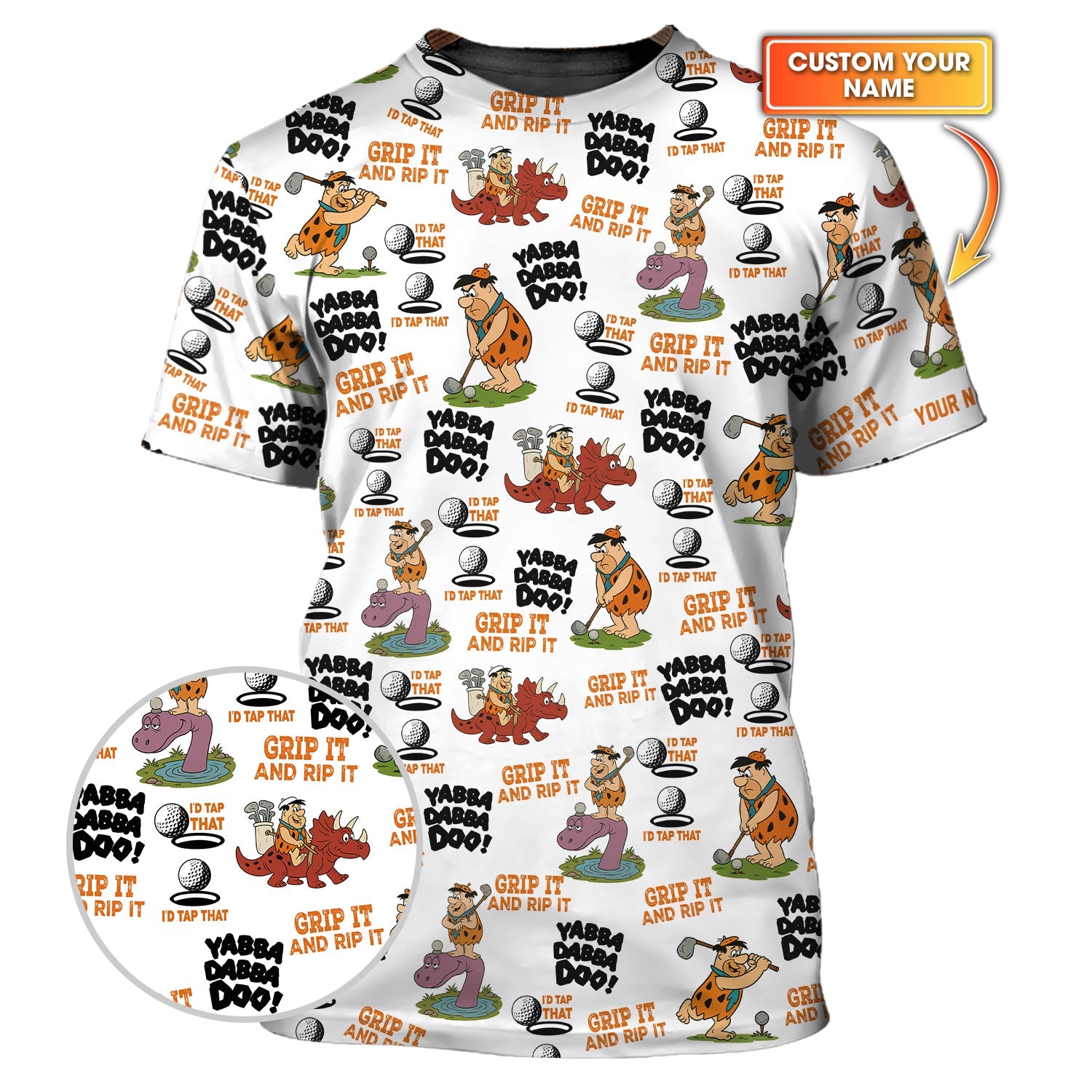 Grip It and Rip It Fred Flintstone Golf Polo Shirt – Funny Yabba Dabba Doo Tee – Personalize Shirt for Golfers