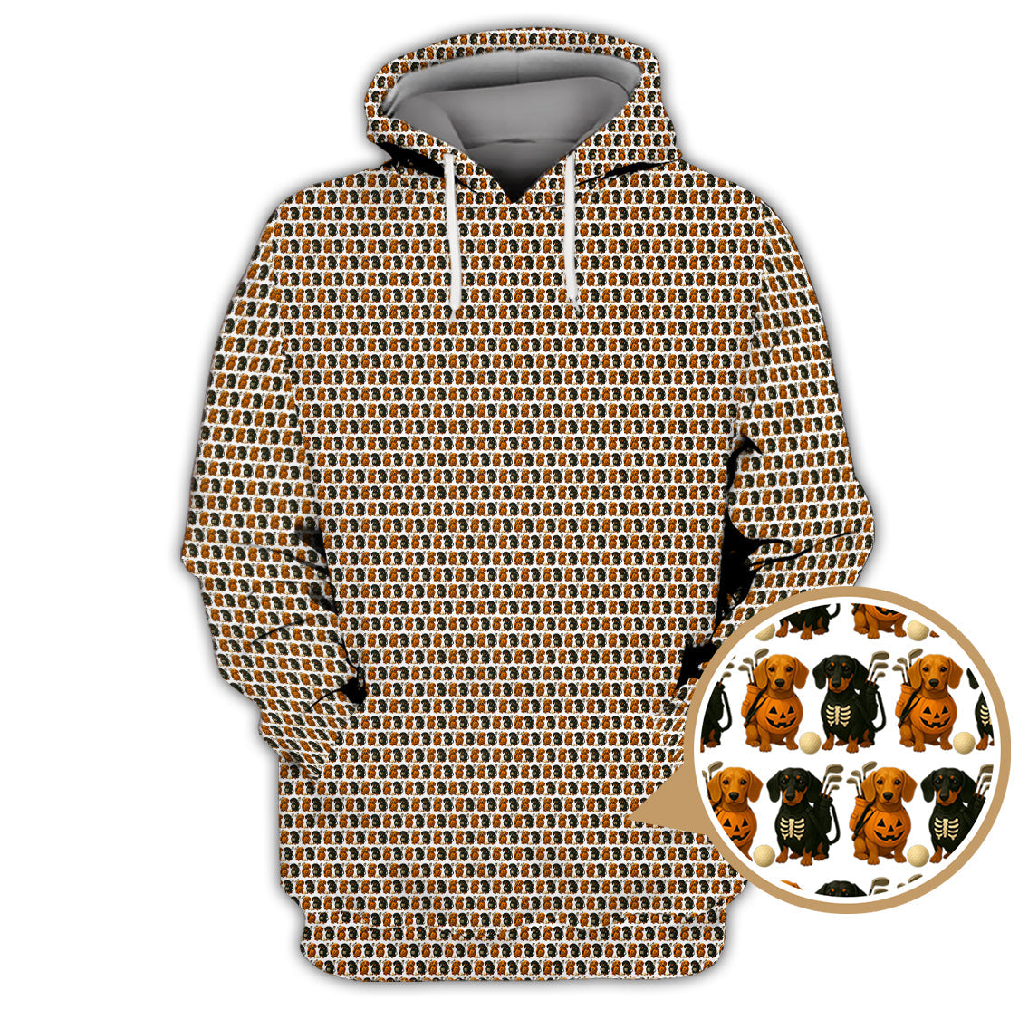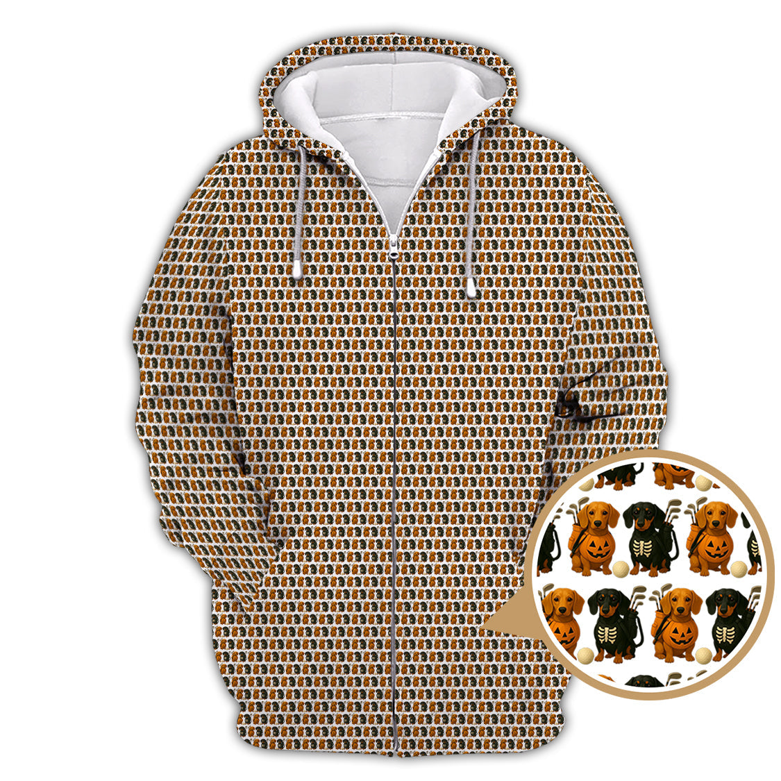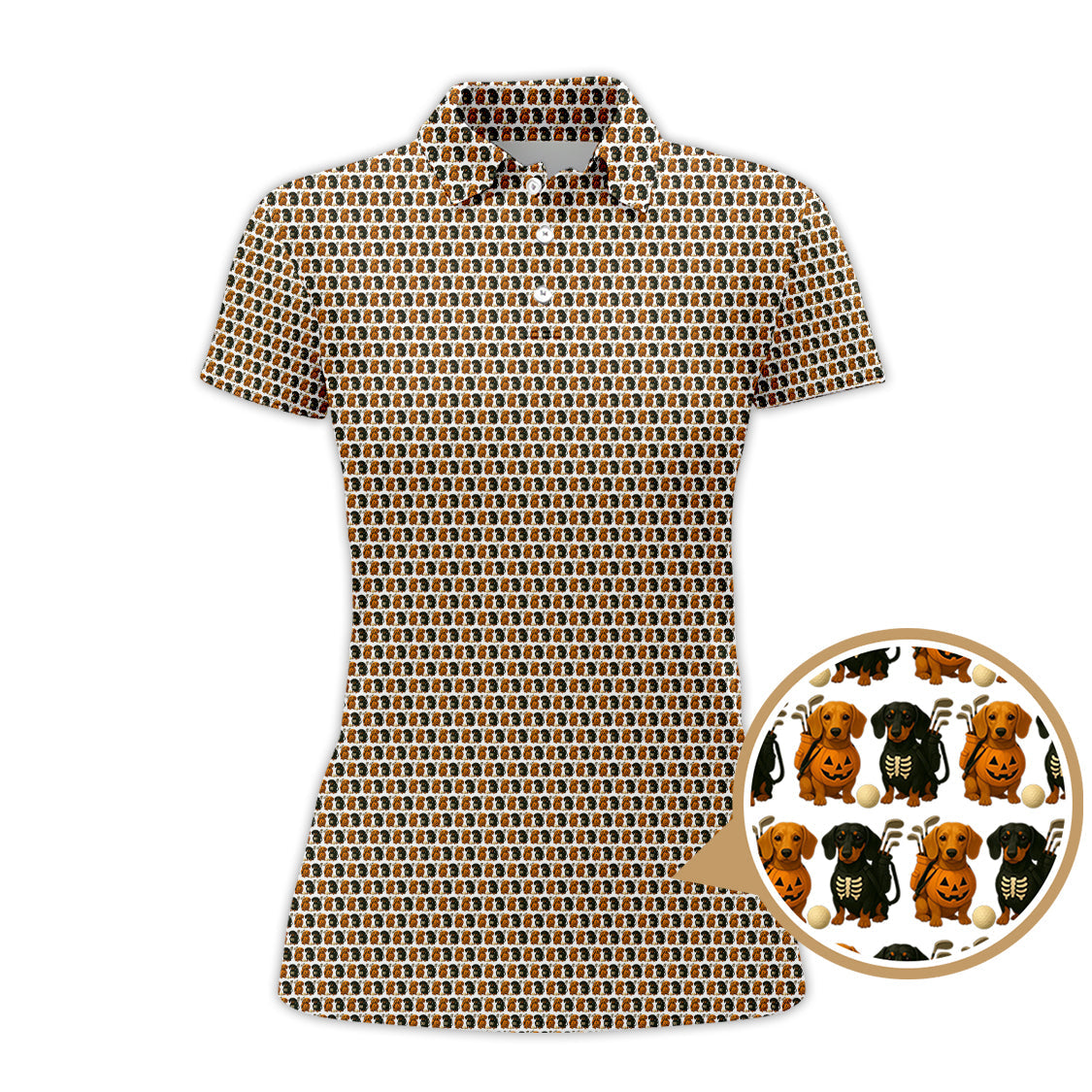 Halloween Golf Shirt, Dachshund Pattern Golf Shirt With Pumpkin And Skeleton, Funny Golf Shirt For Golfer, Dog Golf Shirt
