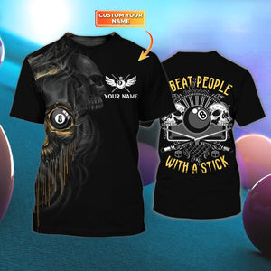 I Beat People With a Stick Personalized Name 3D Tshirt For Billiard Player