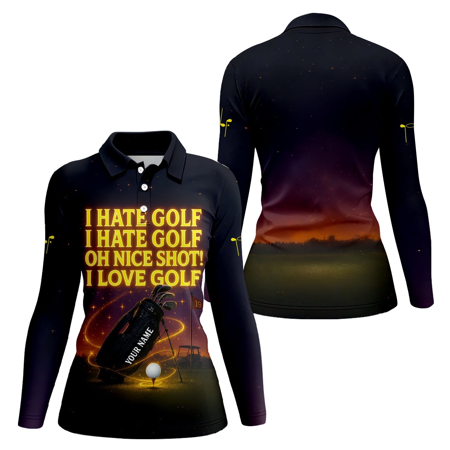 I Hate Golf I Hate Golf Oh Nice Shot I Love Golf Shirt, Funny Golf Polos With Custom Name, Golf Gift For Men's