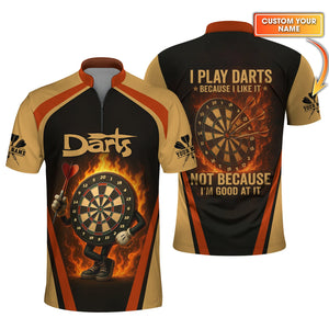 I Play Darts Because I Like It Shirt – Funny Dartboard Flame Shirt – Custom Name Dart Tee