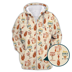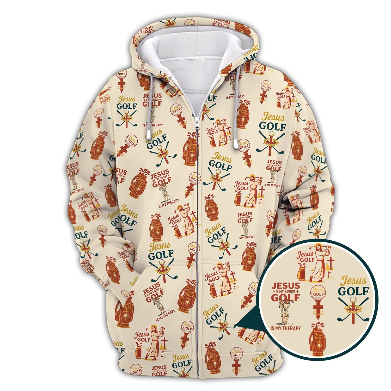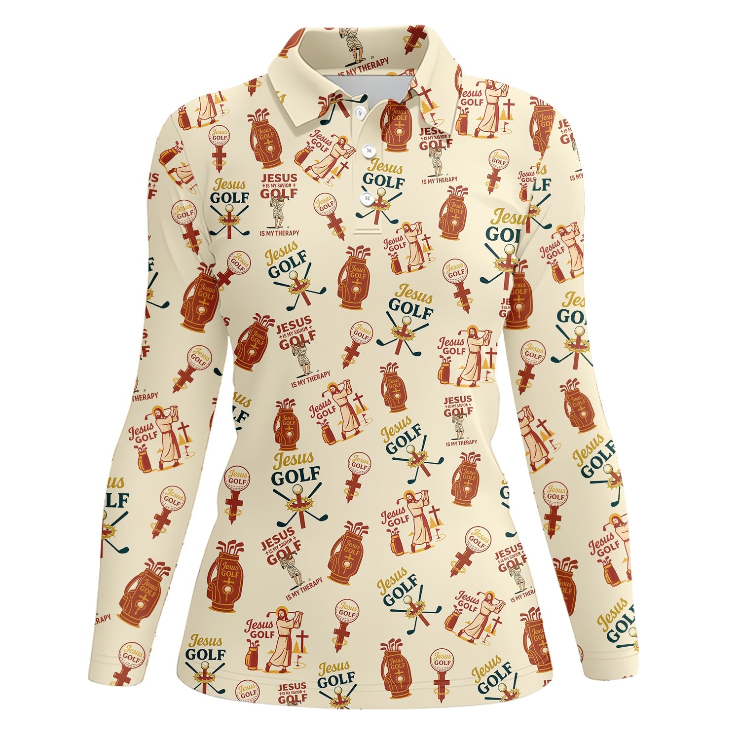 Jesus And Golf Is My Therapy Shirt, Pattern Golf Shirt, Jesus Golf Polos For Men