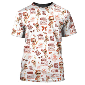 Just a Girl Who Loves Bowling Retro Shirt, Personalized Pink Bowling Tee for Women, Great Gift for Ladies Bowling League