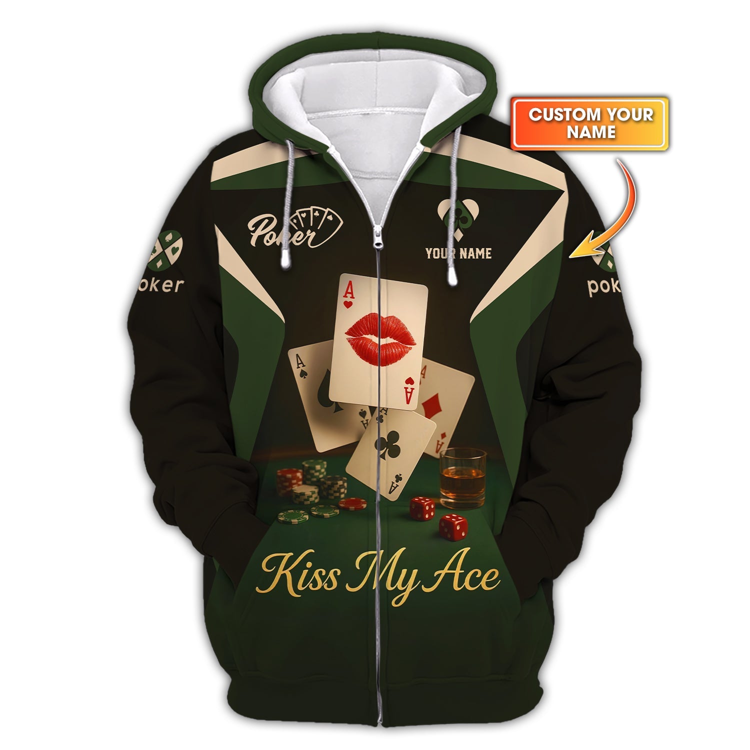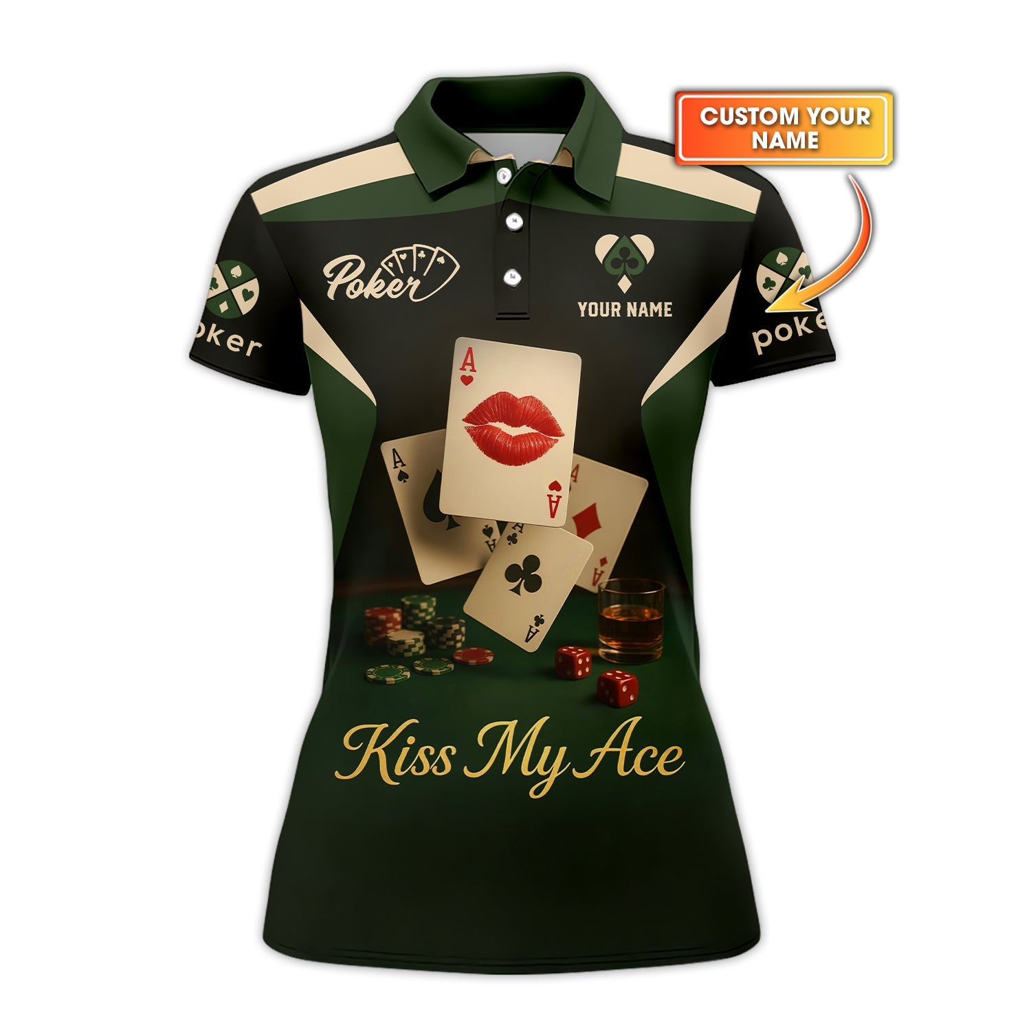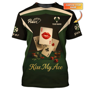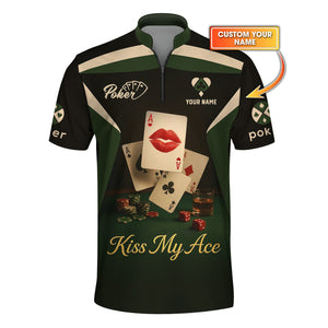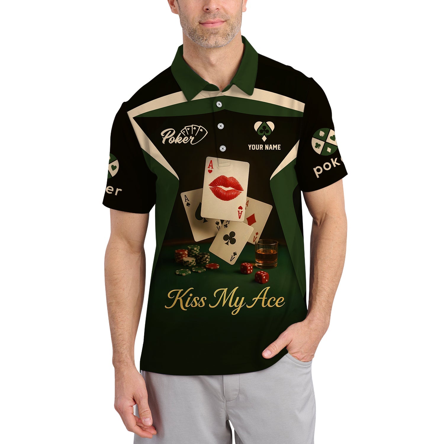 Kiss My Ace Poker Shirt, Funny Poker Polos, Personalized Name Poker Shirts