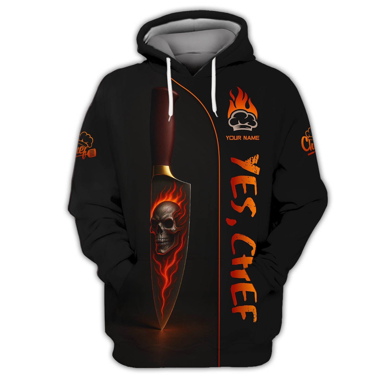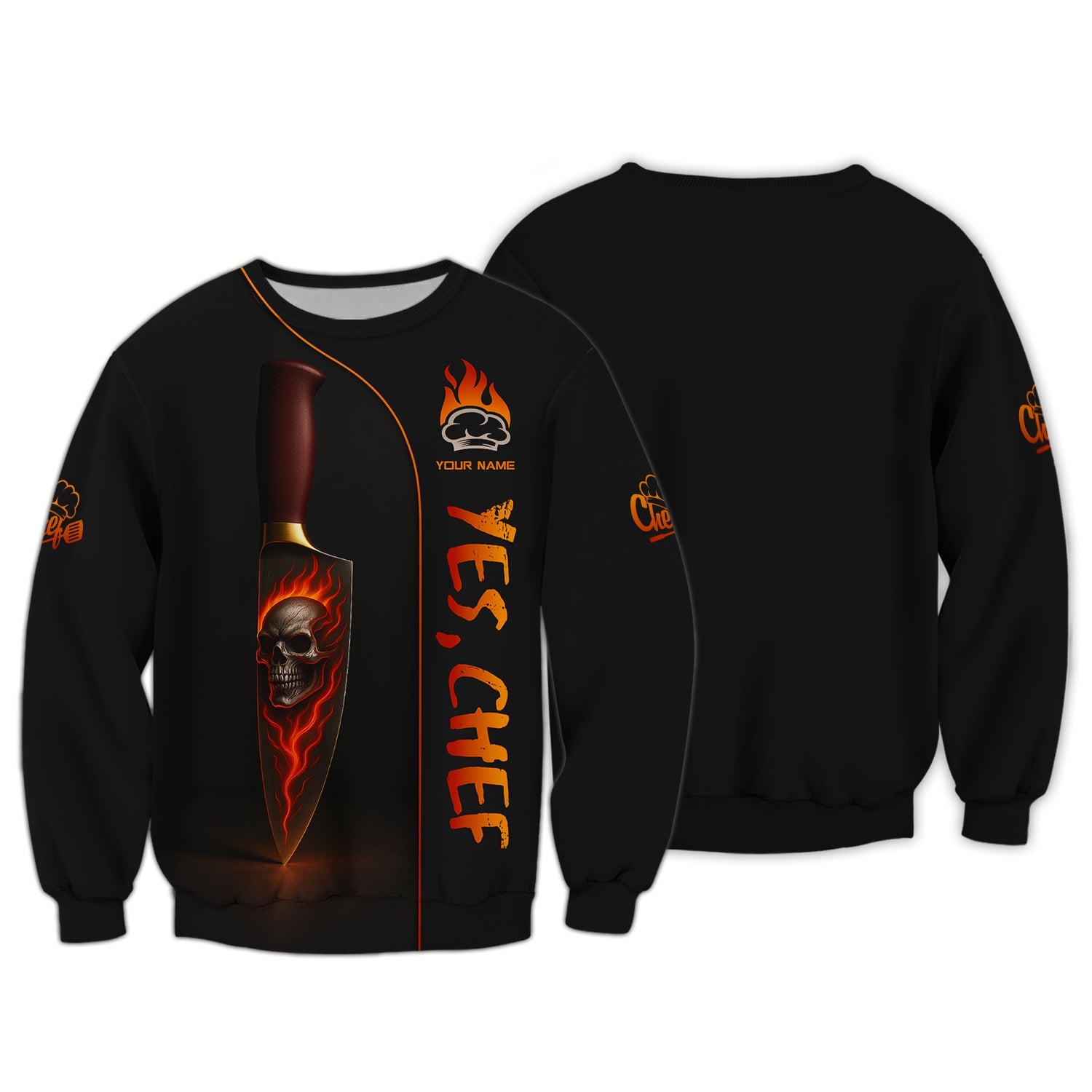 Premium AOP Printing β High-definition, fade-resistant graphics featuring a fiery red pepper, knife, and chef hat β capturing the bold spirit of culinary passion.