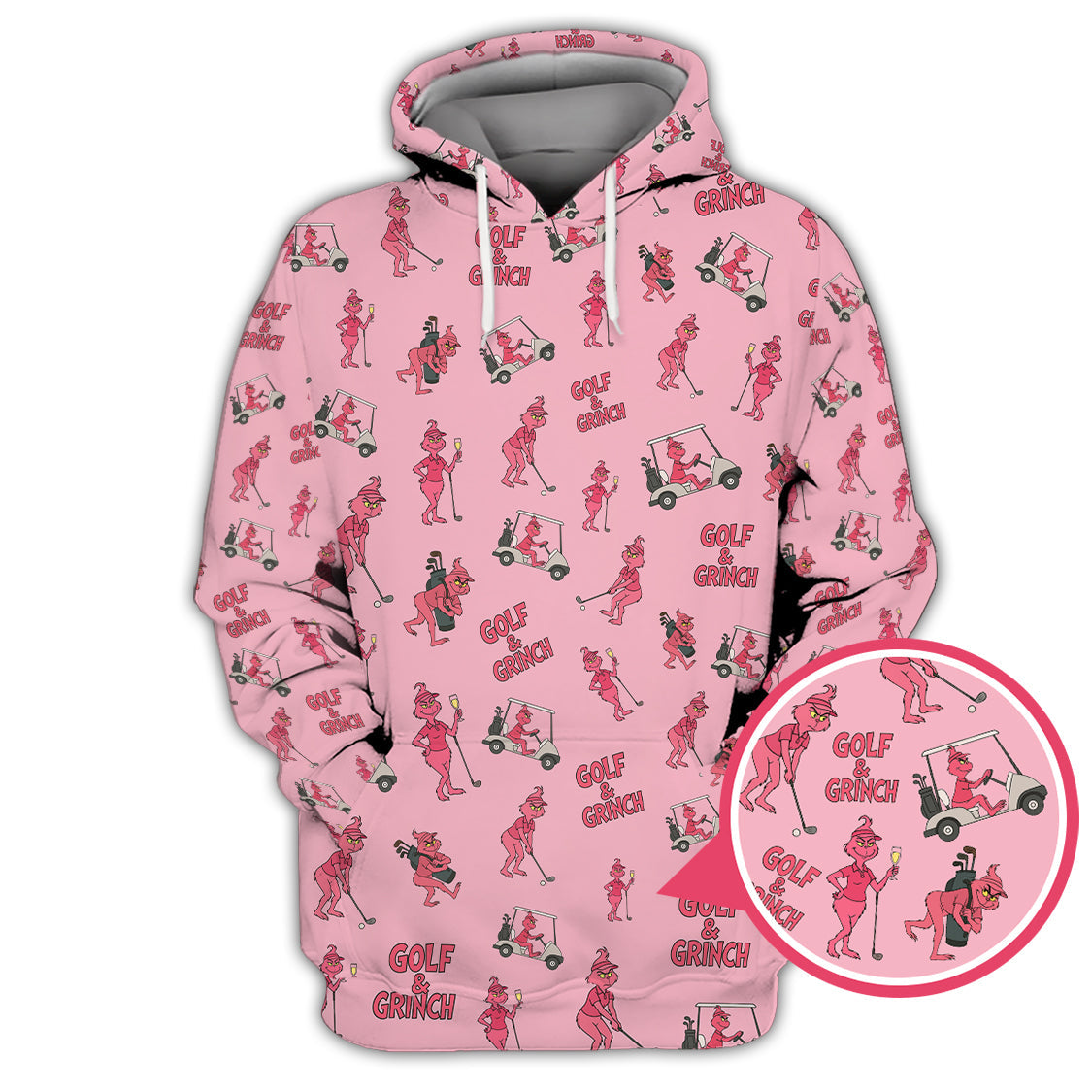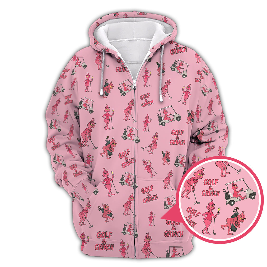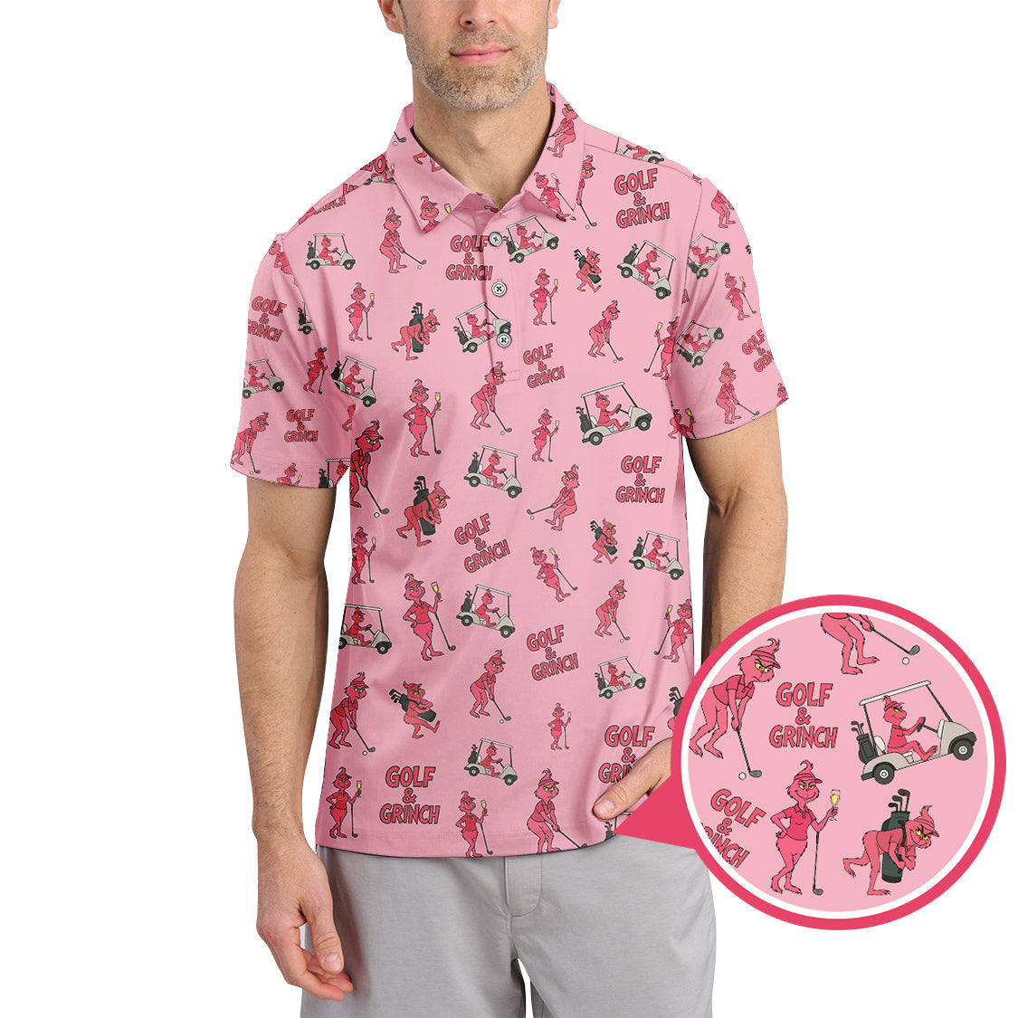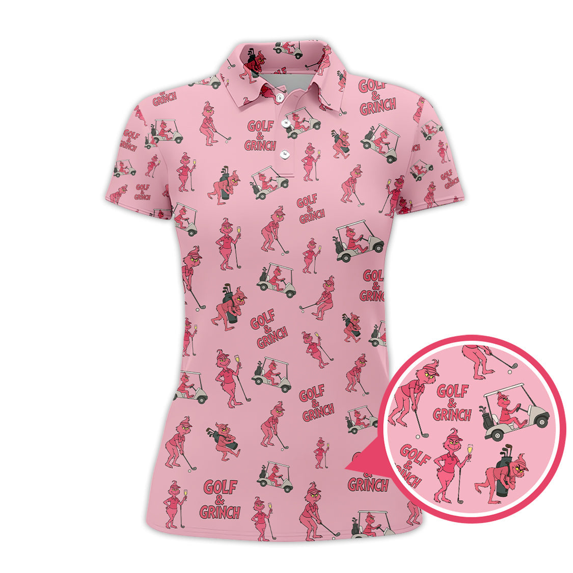Ladies Golf Shirts For Golfer, Pink Pattern Golf Shirt, Grinch Golf Shirt