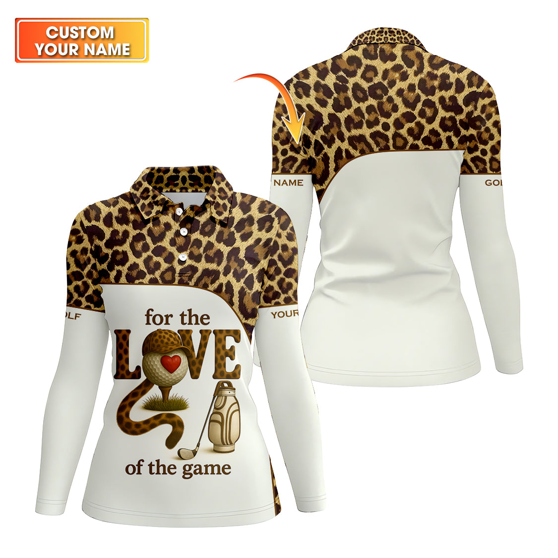 Leopard Golf Shirt For Women, For The Love Of The Game Golf Shirts, Personalized Golf Polos For Ladies