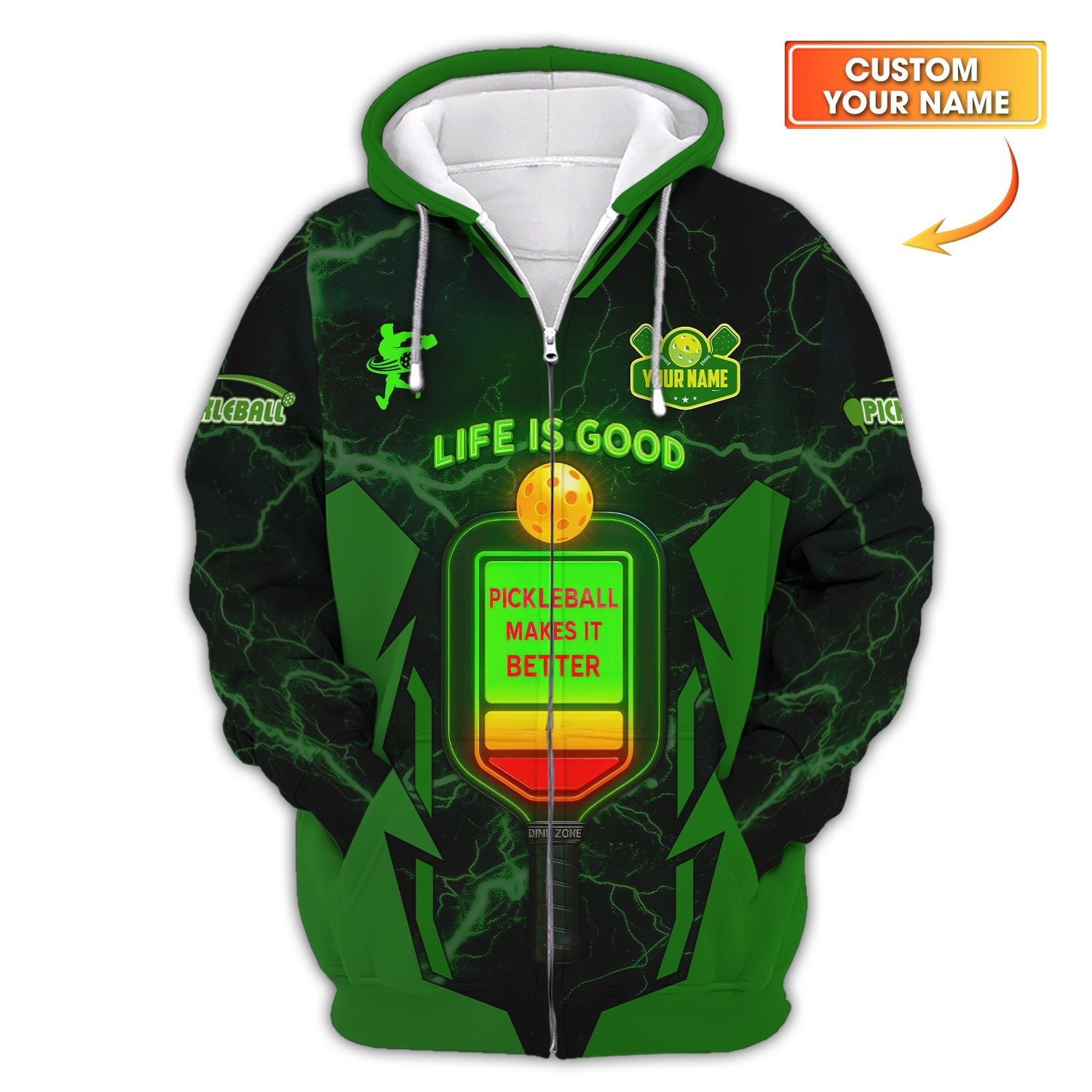 Life Is Good Pickleball Makes It Better, Custom 3D Pickleball Shirt, Funny Sport Tee, Gifts for Pickleball Lovers