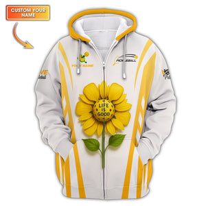 Life Is Good Pickleball Shirt, Custom Name Sunflower Polos For Pickleball Lovers, Gift For Women's Pickleball Players