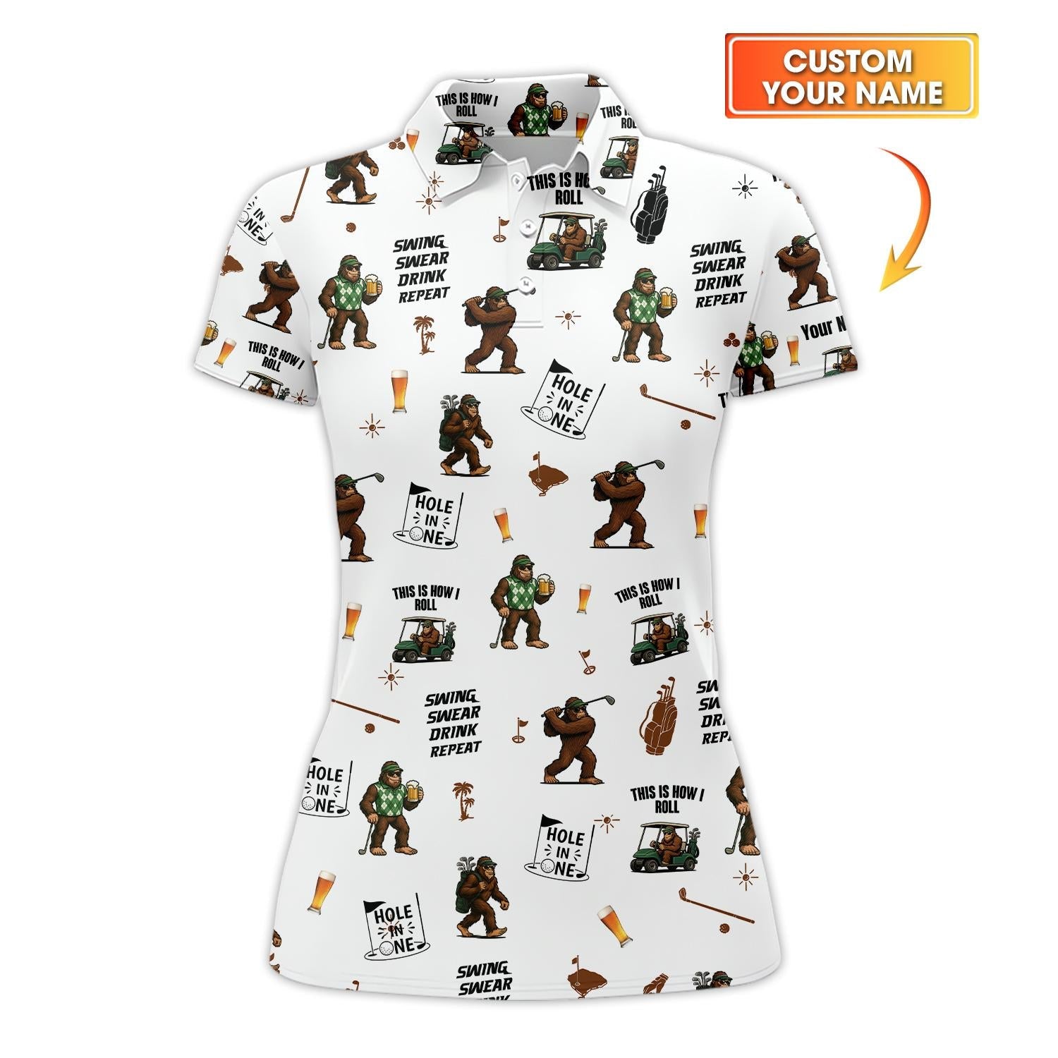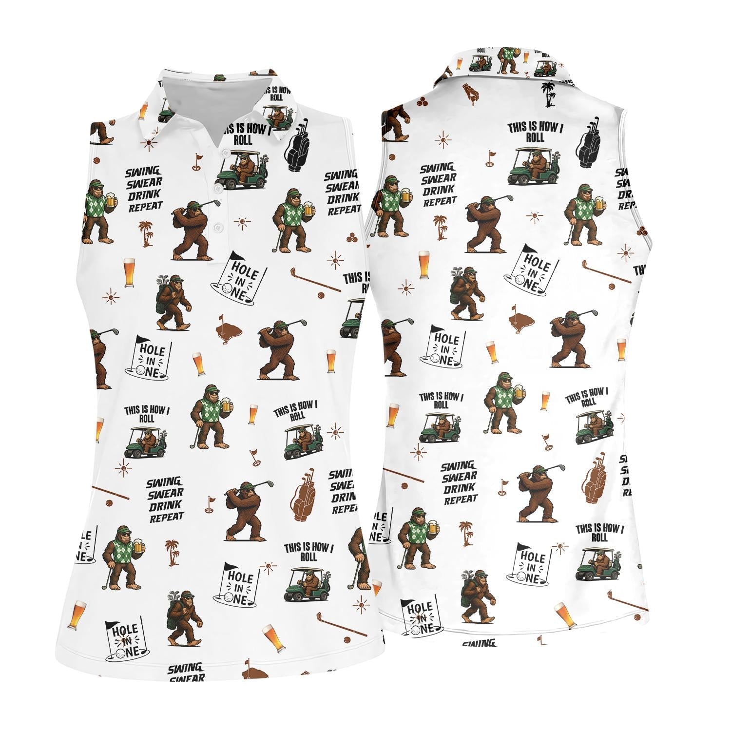 Masters Golf Polo Shirt for Men – Custom Bigfoot Golfbeer Design – Hole in One Swing Swear Drink Repeat Tee