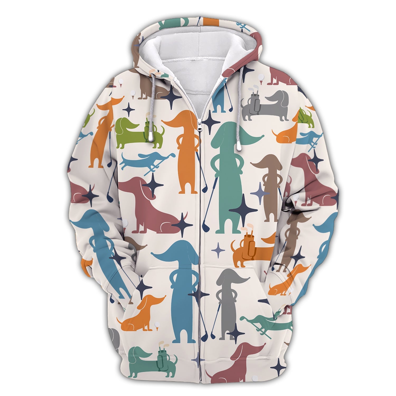 Men' Pattern Golf Shirt, Funny Dachshund Golf Shirt, Crazy Golf Shirt For Golfer