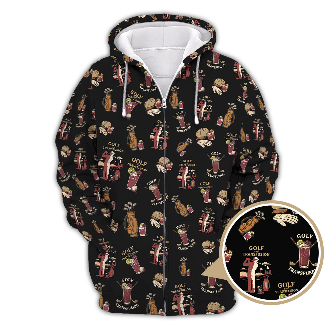 Men's Golf Pattern Shirts, Transfusion Golf Shirt, Golf Transfusion Drink Polos For Golfers
