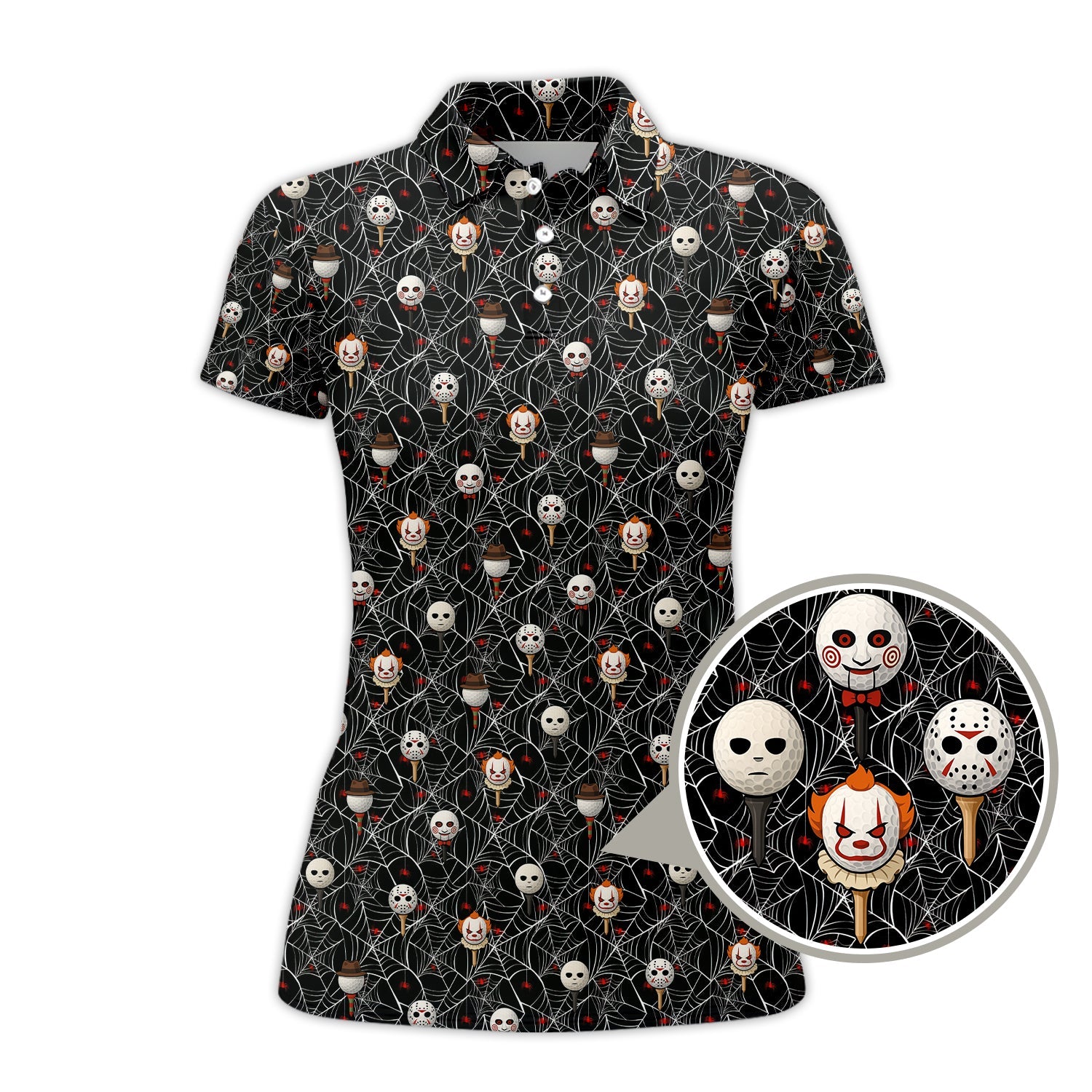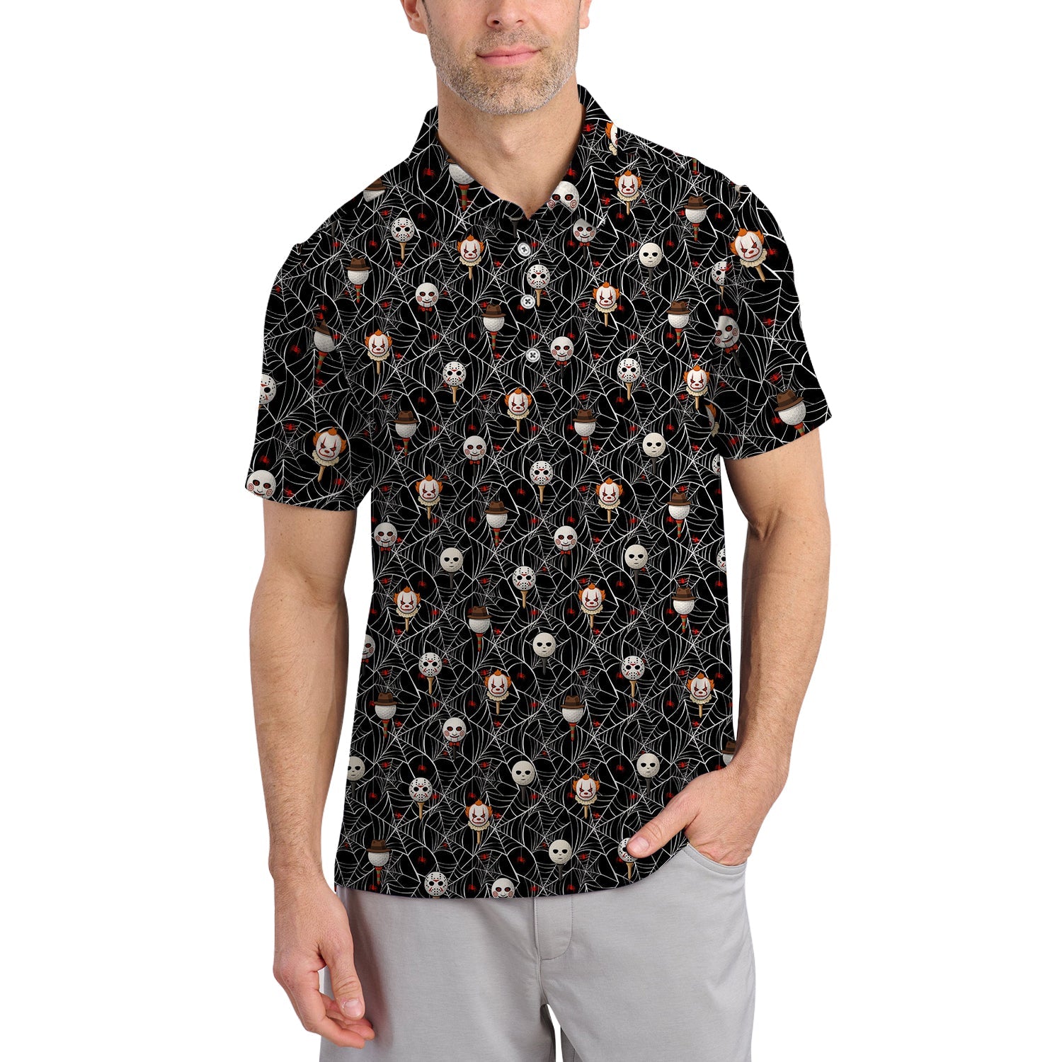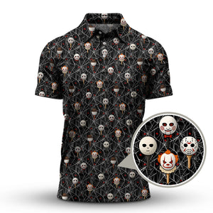 Men's Pattern Golf Shirt, Halloween Golf Shirt For Golfer, Horror Movie Shirt