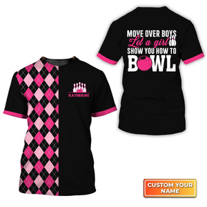 Move Over Boys Let A Girl Show You How to Bowl Personalized Name 3D Tshirt