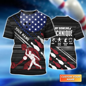 My Bowling Technique Personalized Name 3D Tshirt For Bowling Player
