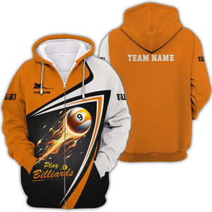 Orange Play Billiards Flaming 9-Ball 3D Effect Custom T-Shirt, Billiards Pool Shirts, Gift For Billiards Players