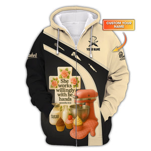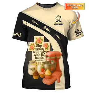 Personalized Baker Shirt, She Works Willingly With Her Hands Proverbs 31:13 Shirt, Gift For Baking Lover