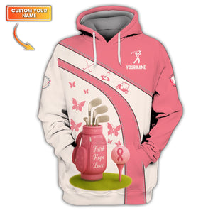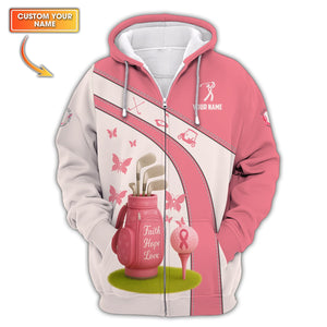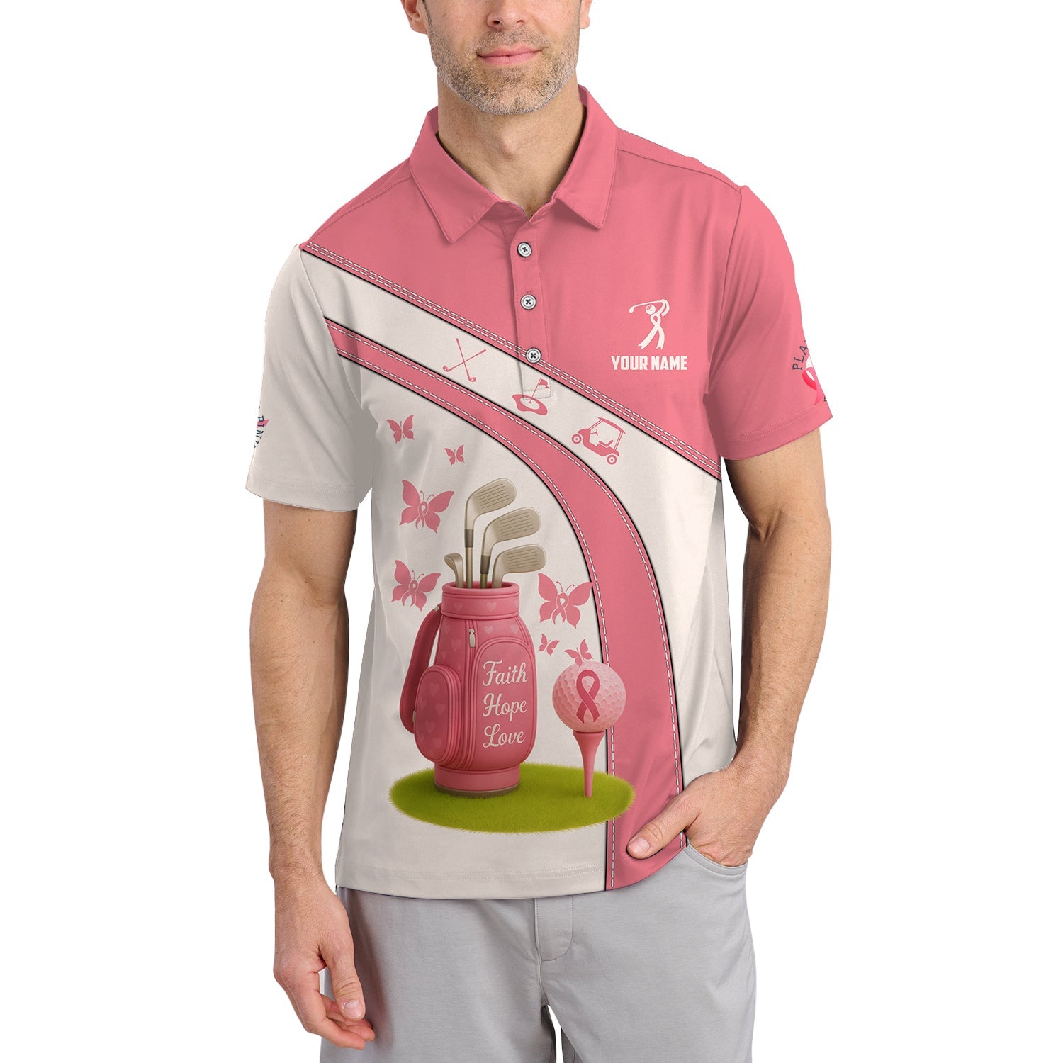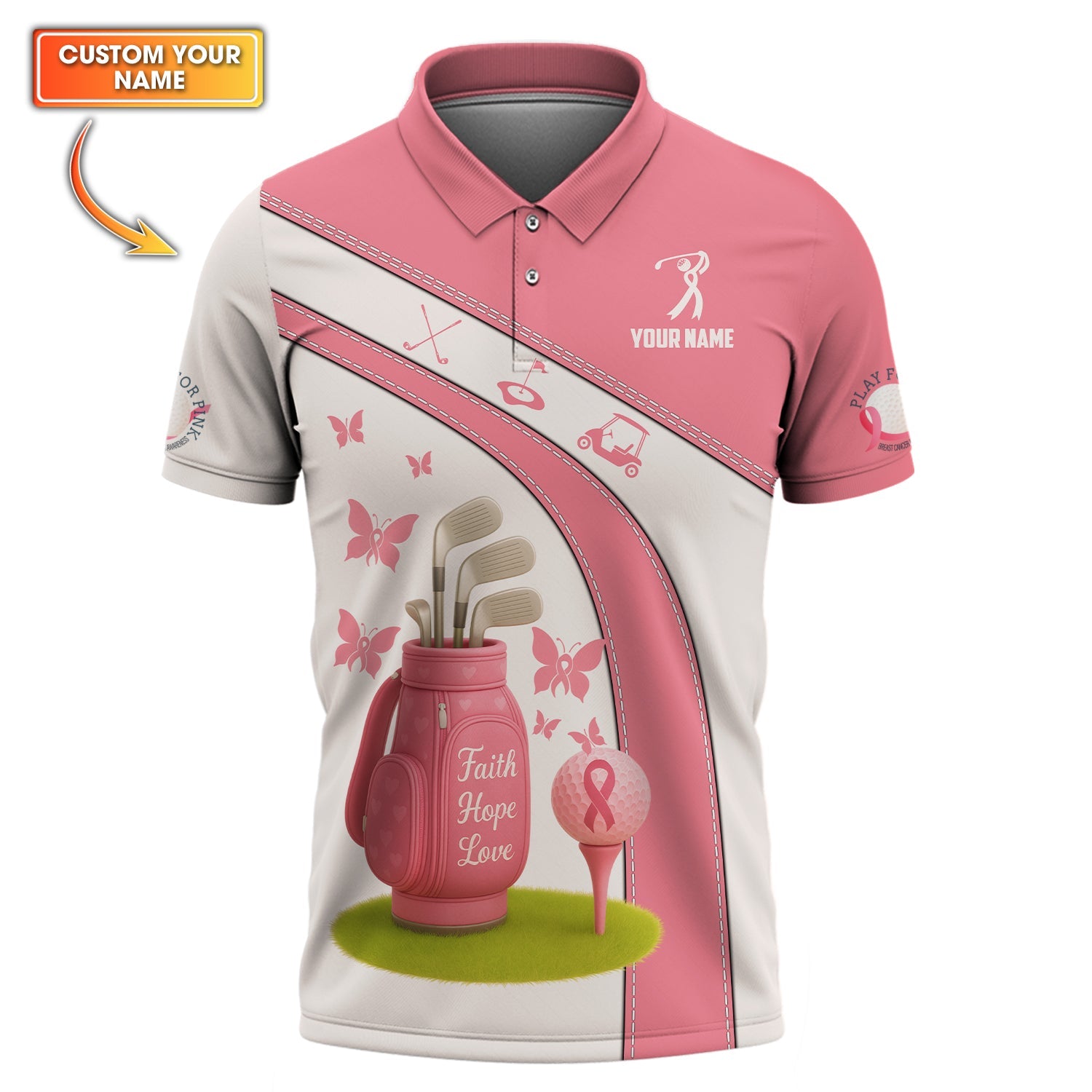 Personalized Breast Cancer Golf Shirt, Pink Golf Shirt, Golf Gift For Golfer, Custom Name Golf Shirt