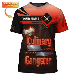 Personalized Chef Shirts, Culinary Gangster Cooking Shirt With Knife Chef, Custom Name Chef 3D Shirt