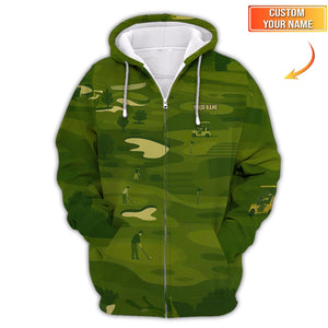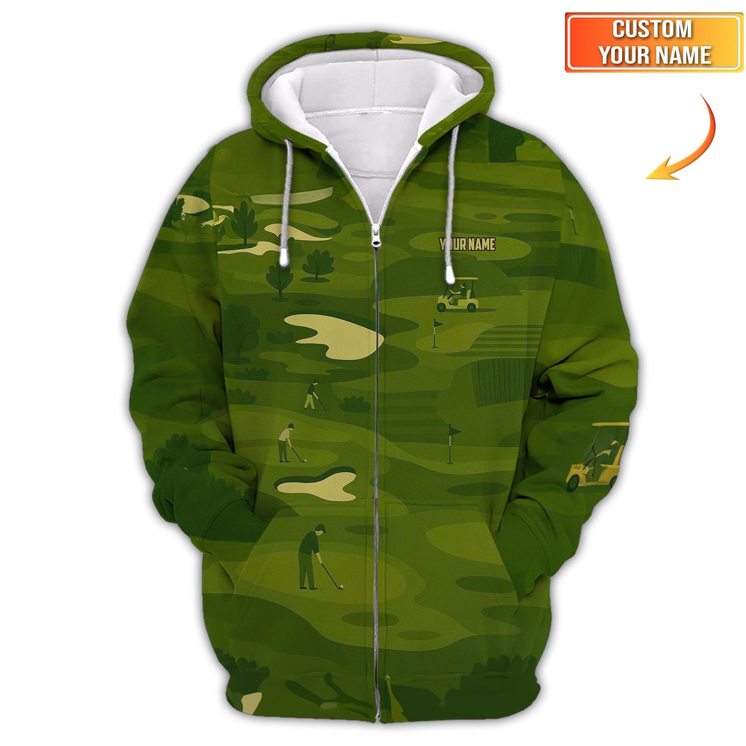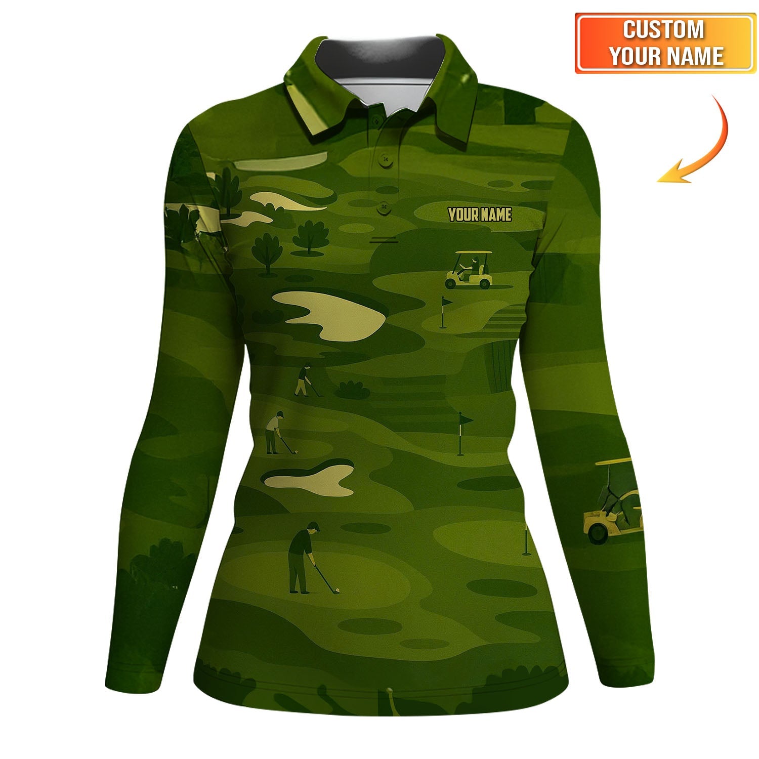 Personalized Golf Polos, Green Golf Course Pattern Custom Name Shirt For Golf Lovers, Crazy Golf Shirts For Men's