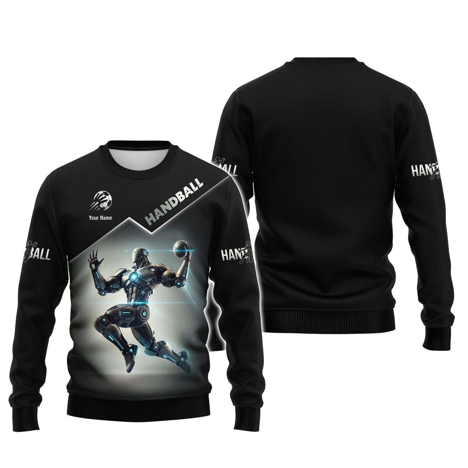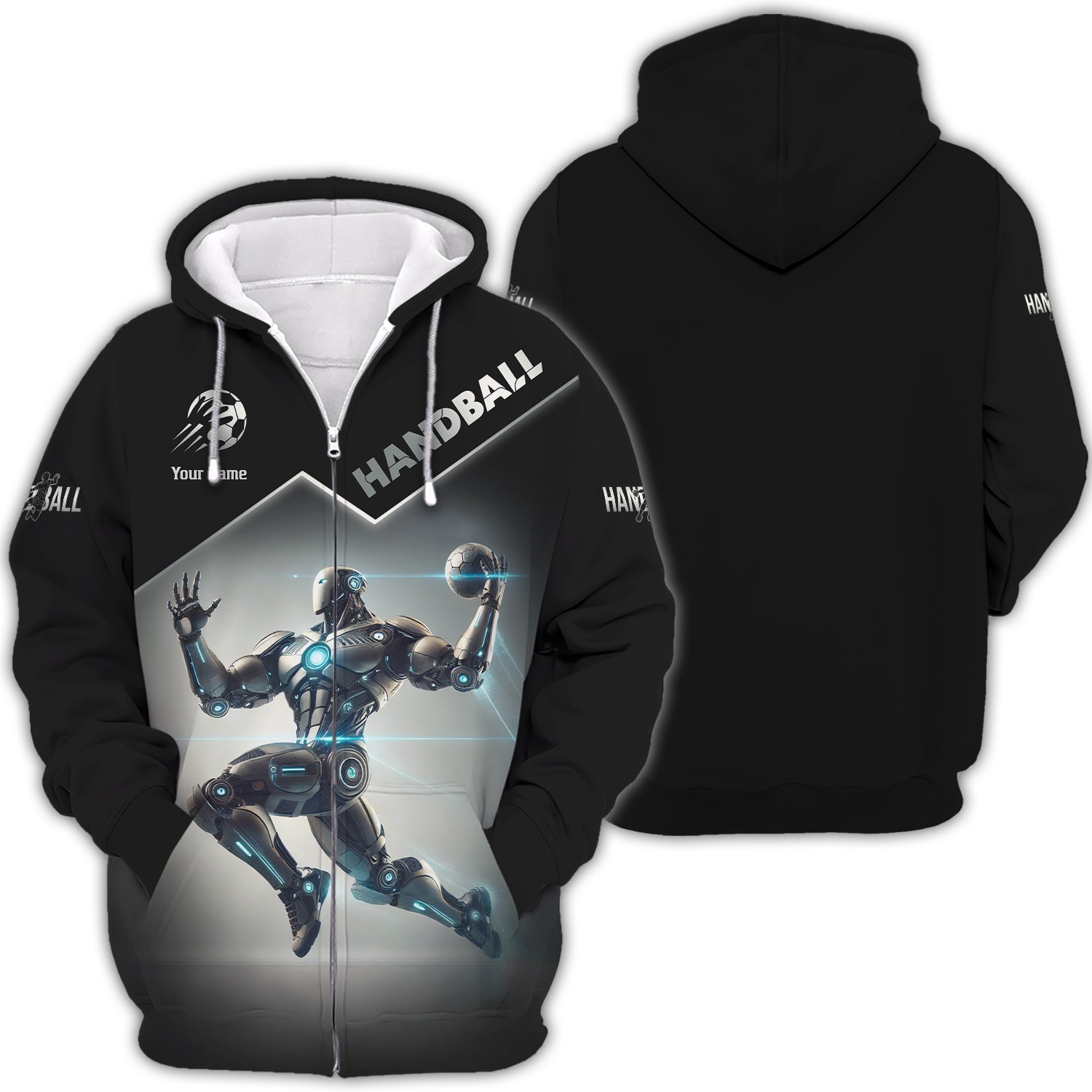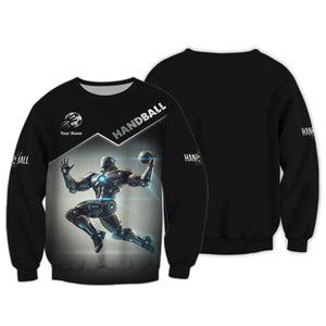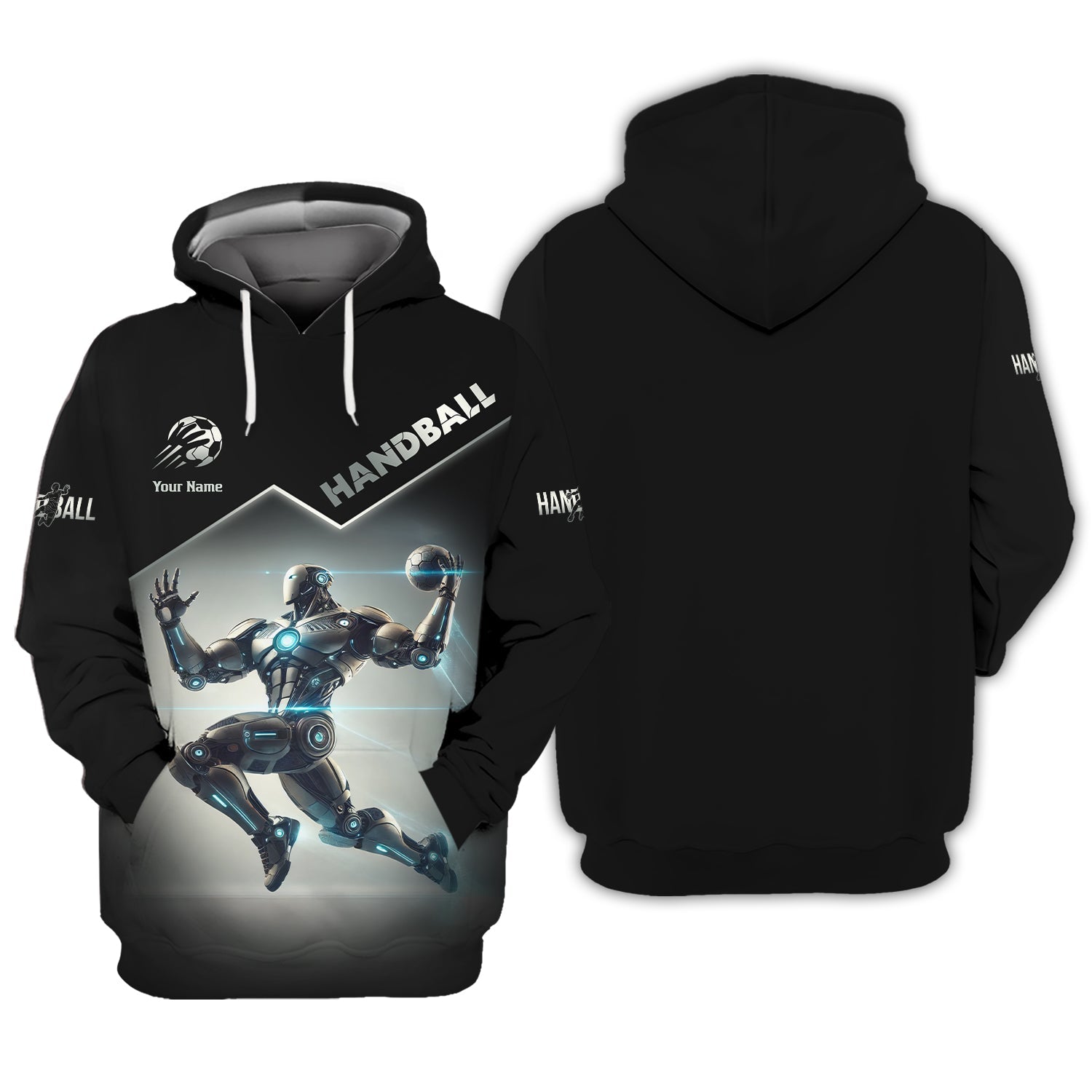 Custom Name Handball Robot T-Shirt 3D Design, Lightweight Sportswear, Gift For Sports Fan