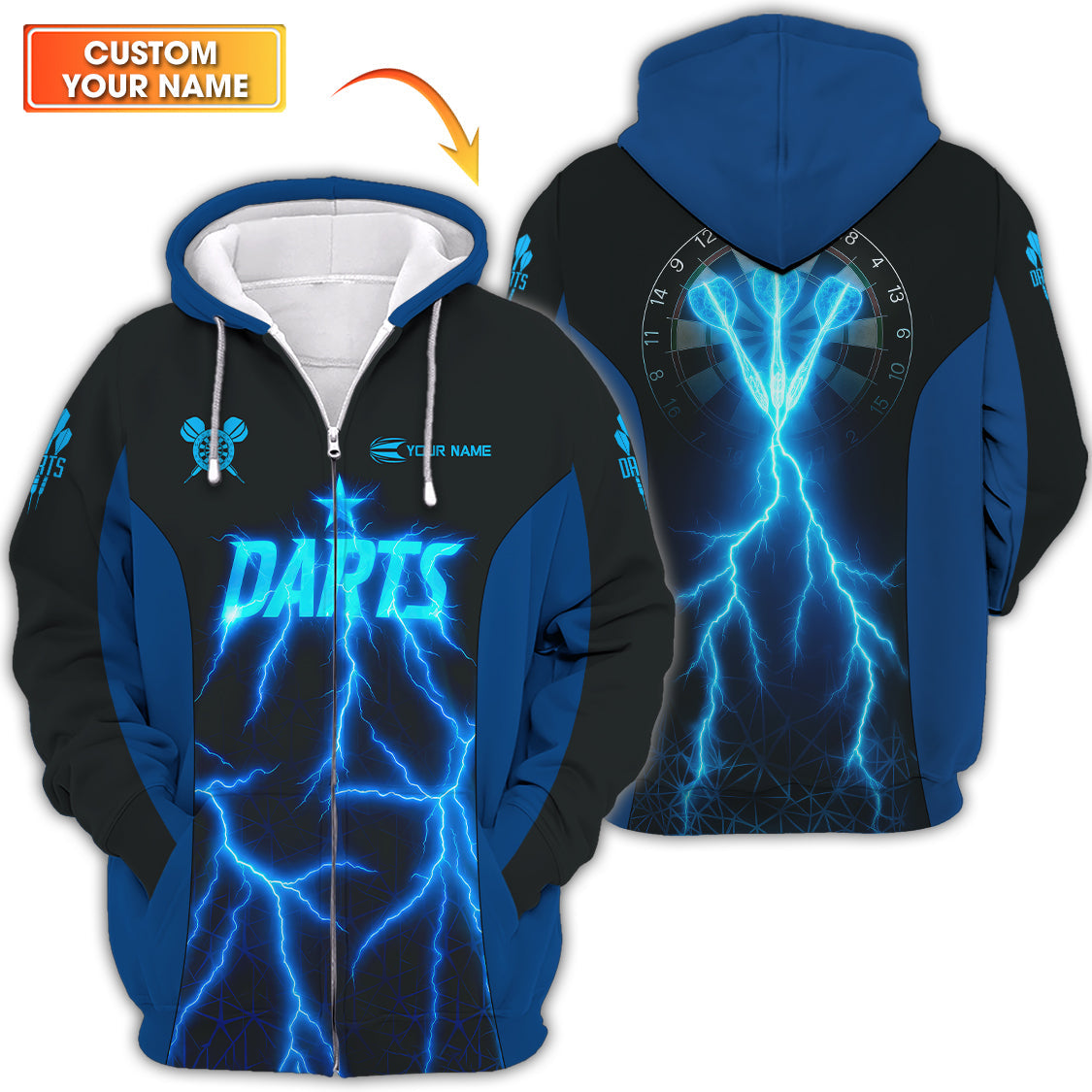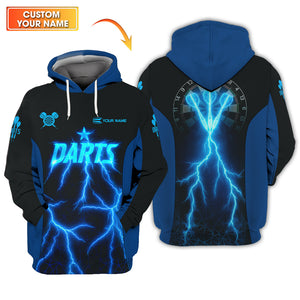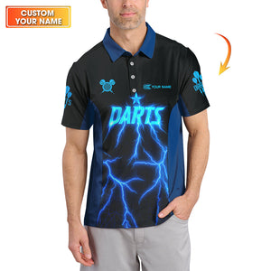 Personalized Name Darts Shirts, Electric Lightning Dart Jerseys, Custom Blue Dart Shirt for Men