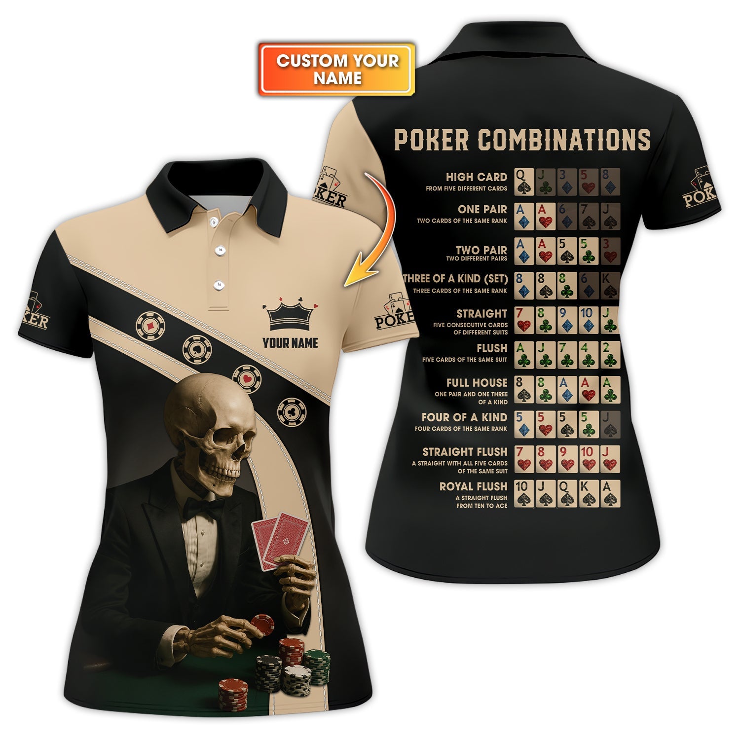 Personalized Name Skeleton Playing Poker Shirts, Funny Poker T-Shirt, Men’s Poker Polos