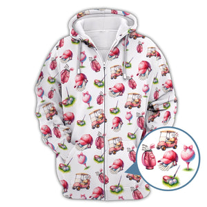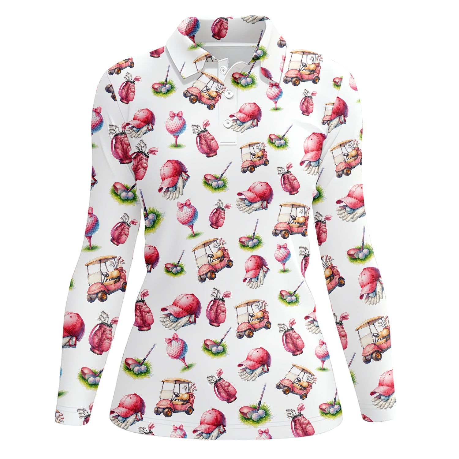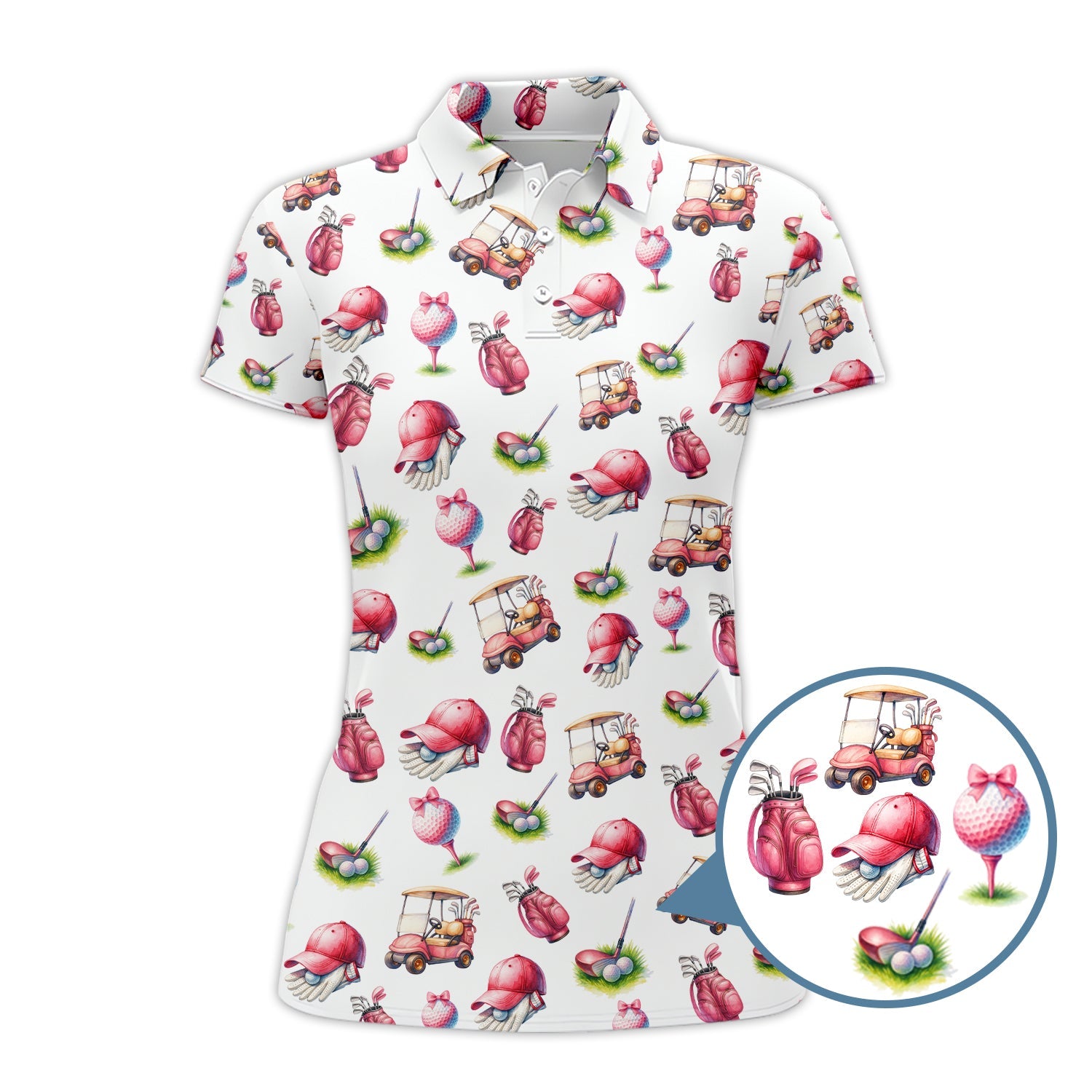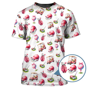 Pink Golf Pattern Polos, Women’s Golf Shirt, Golf Shirts For Ladies