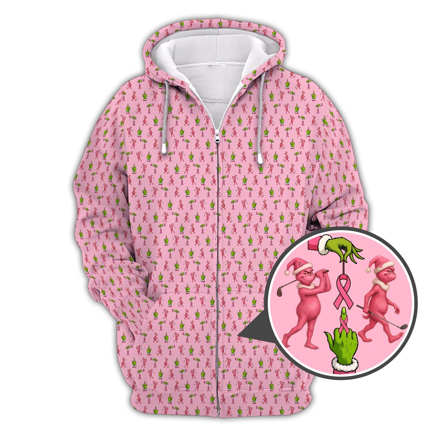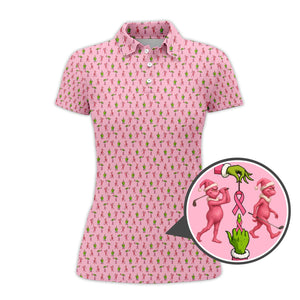 Pink Pattern Golf Shirt, Breast Cancer Golf Shirt, Funny Grinch Golf Shirt For Golfer