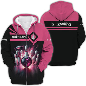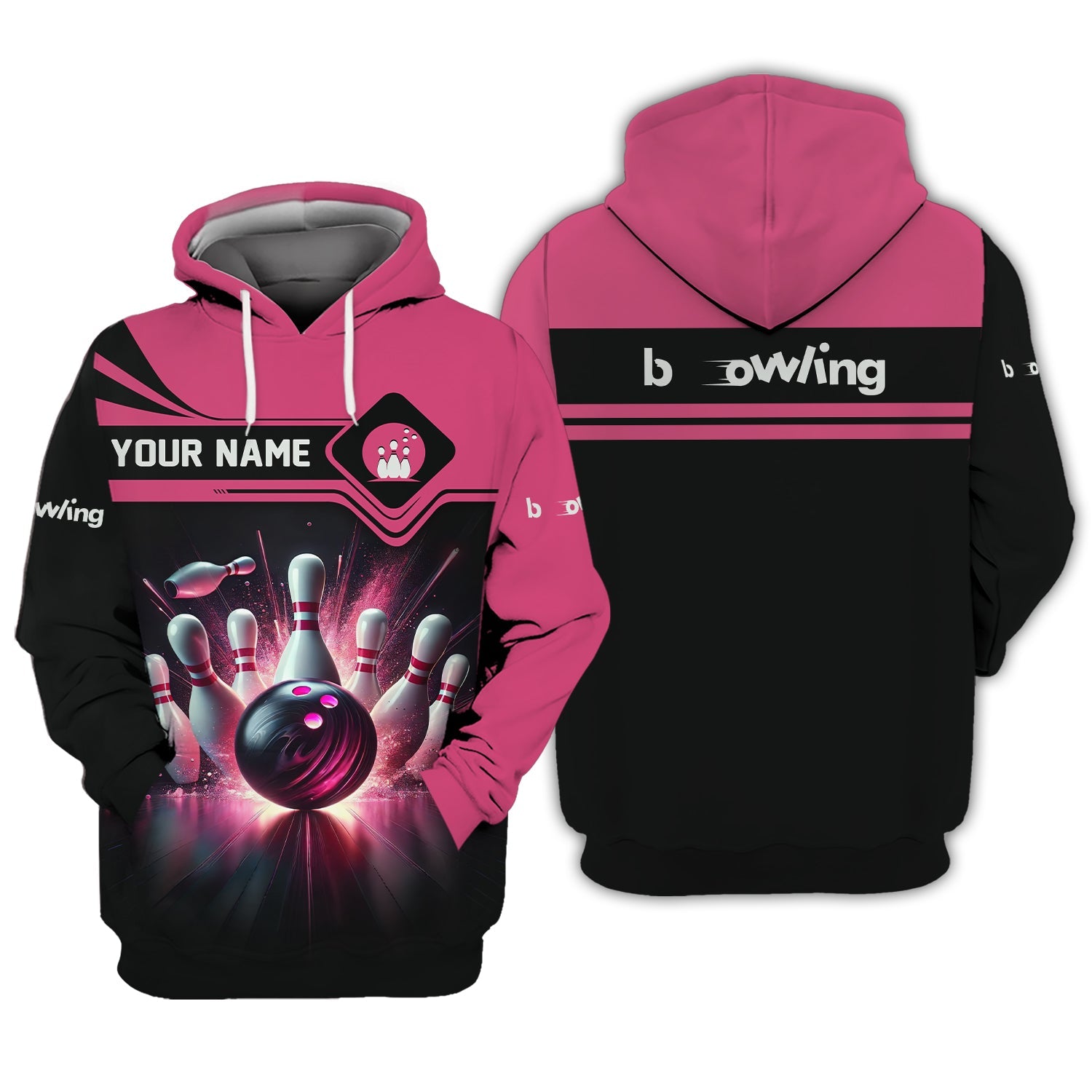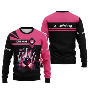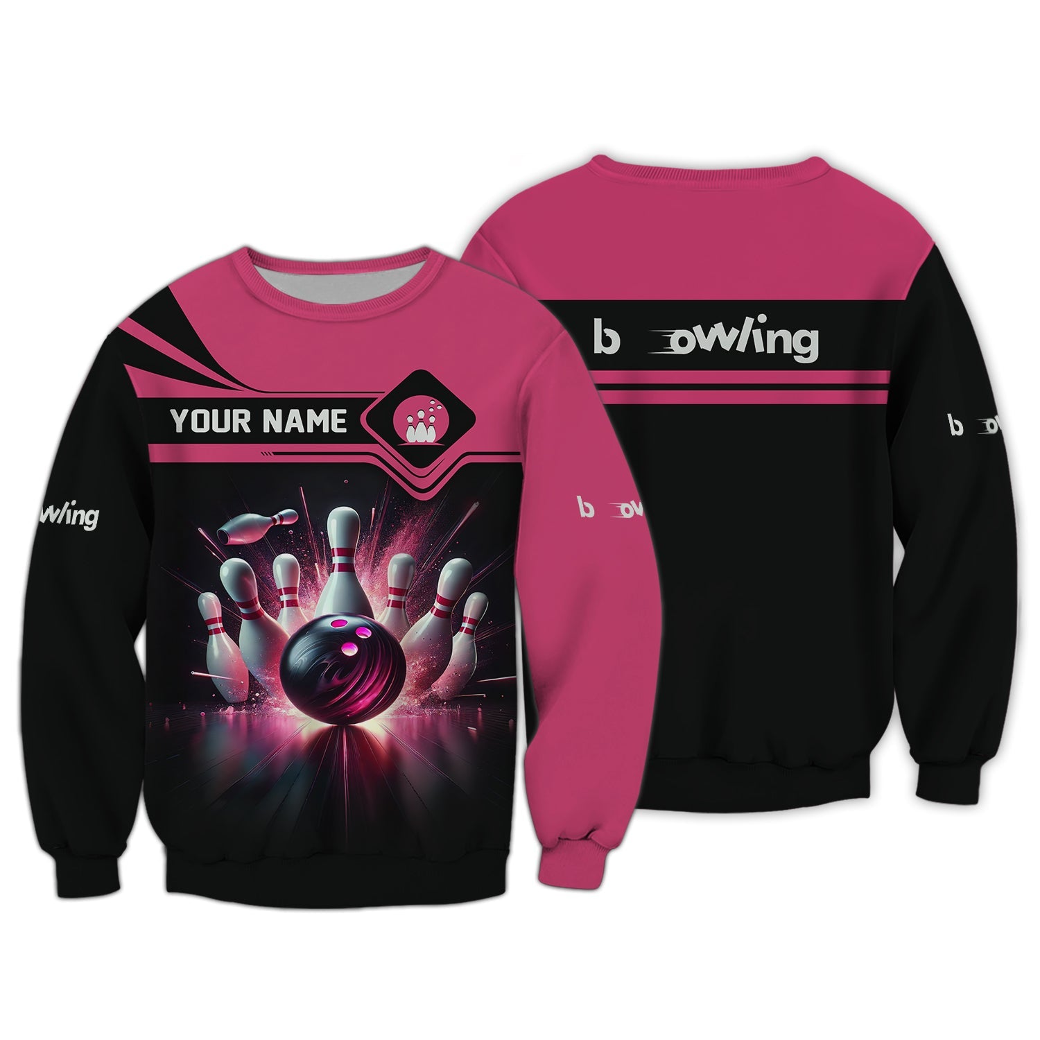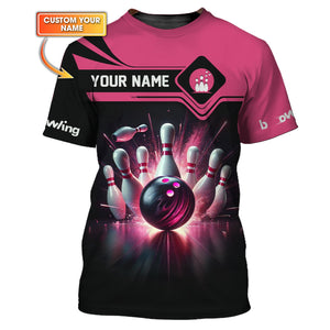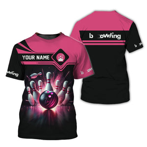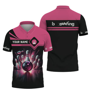 Pink Strike Bowling Personalized Name 3D Polo Shirt, Bowling T-Shirt, Gift For Bowler