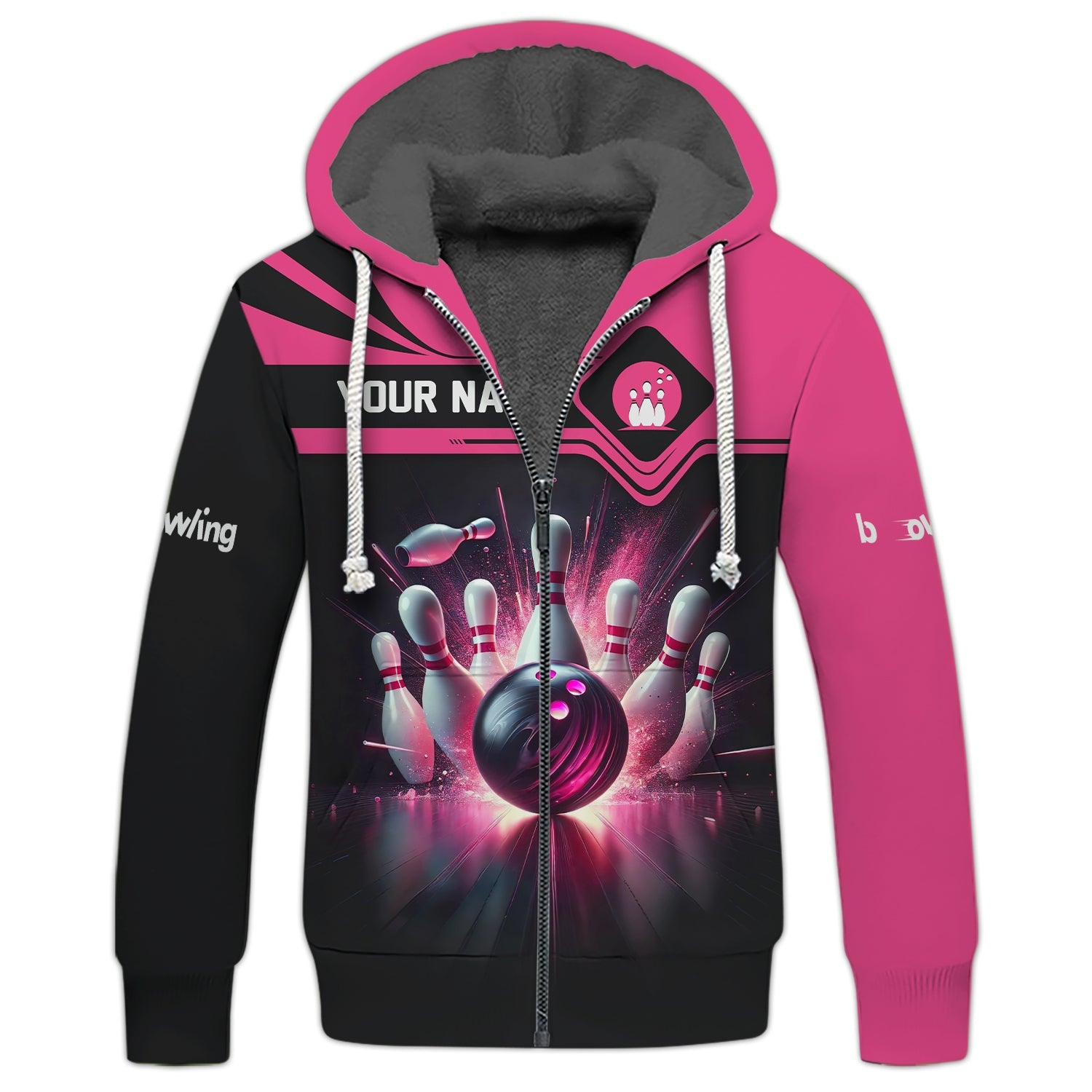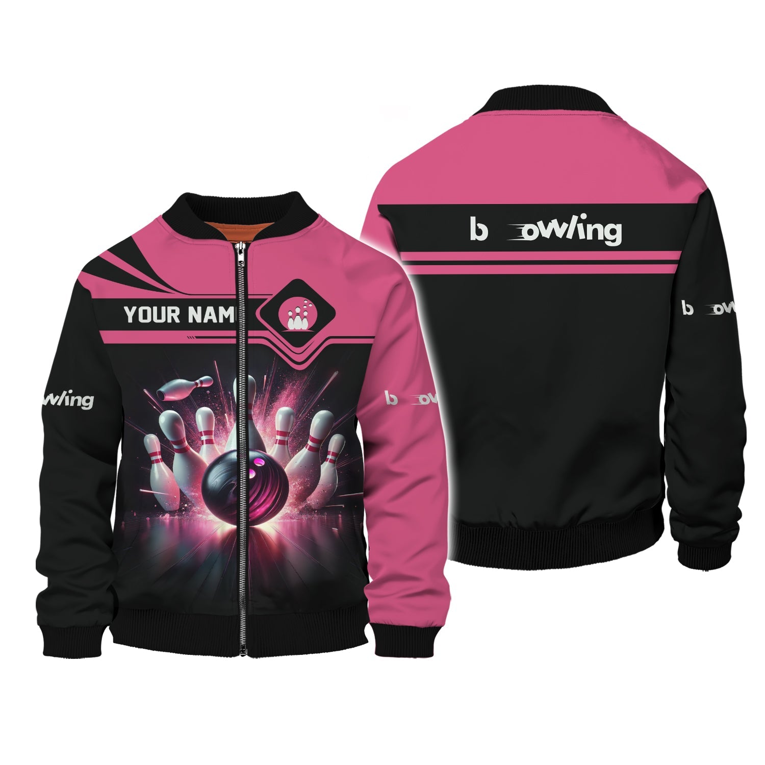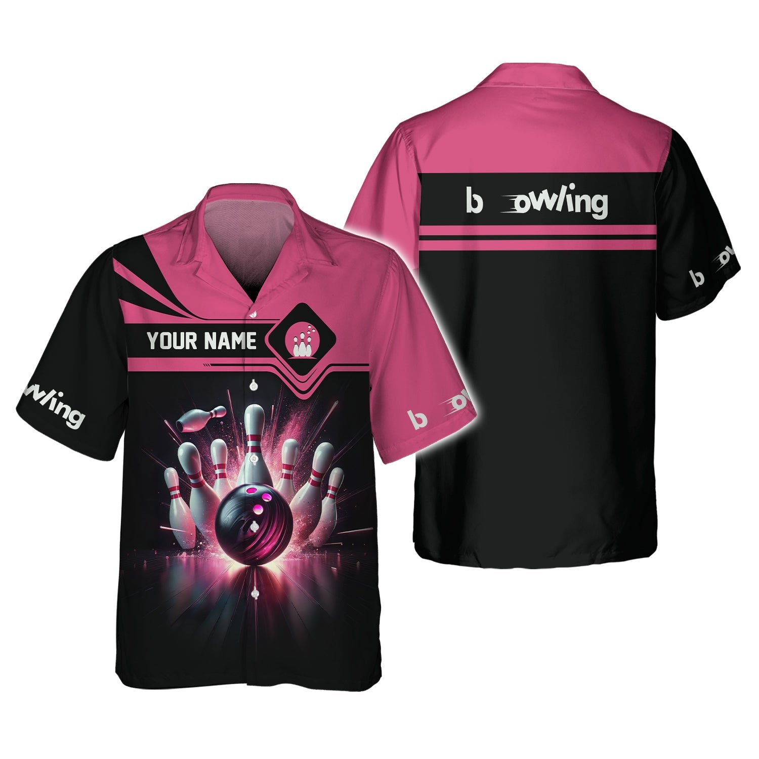 Pink Strike Bowling Personalized Name 3D Polo Shirt, Bowling T-Shirt, Gift For Bowler