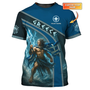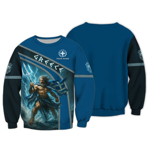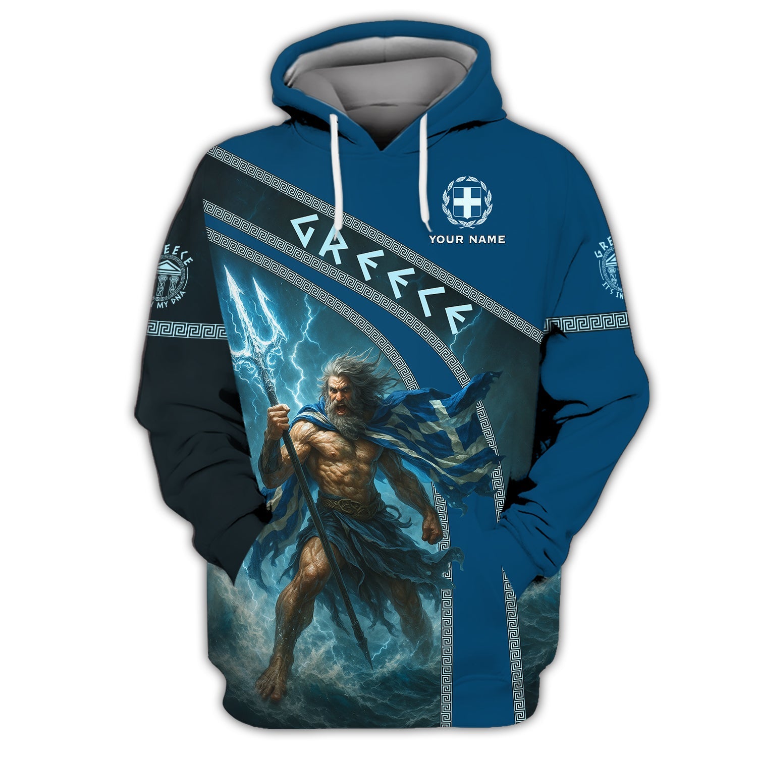 Poseidon Greece Personalized Name 3D Shirt, Custom Name Greece Shirt, Greek God Shirt For Greece Lover