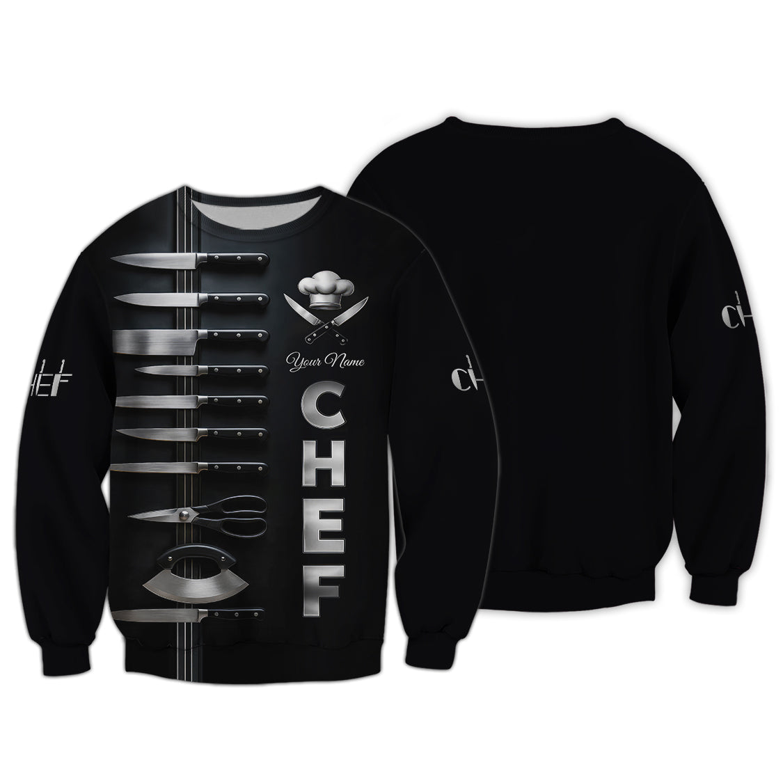 Professional Kitchen Knife Cooking Shirt For Chefs, Custom Name Chef Uniform, Personalized Chef Shirt