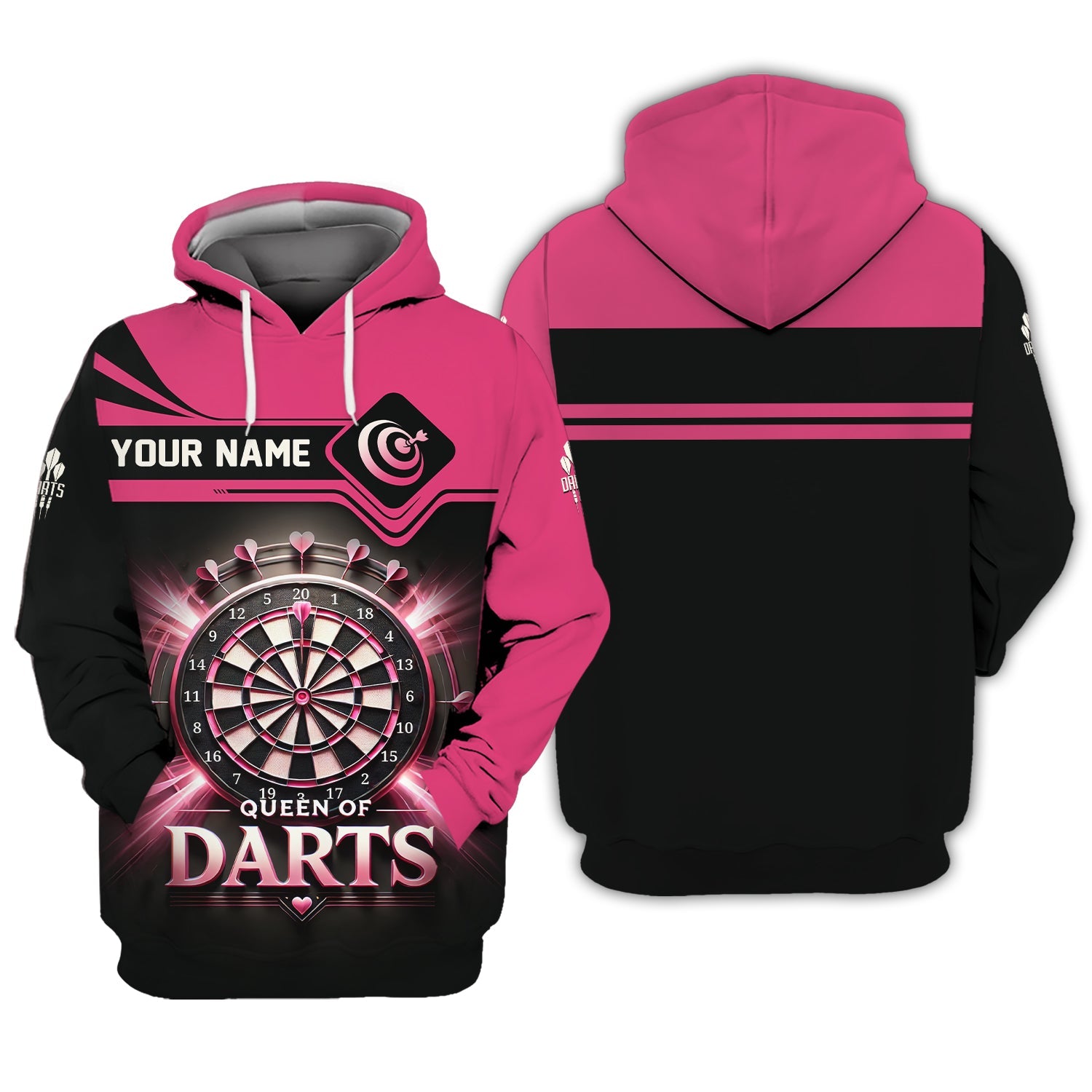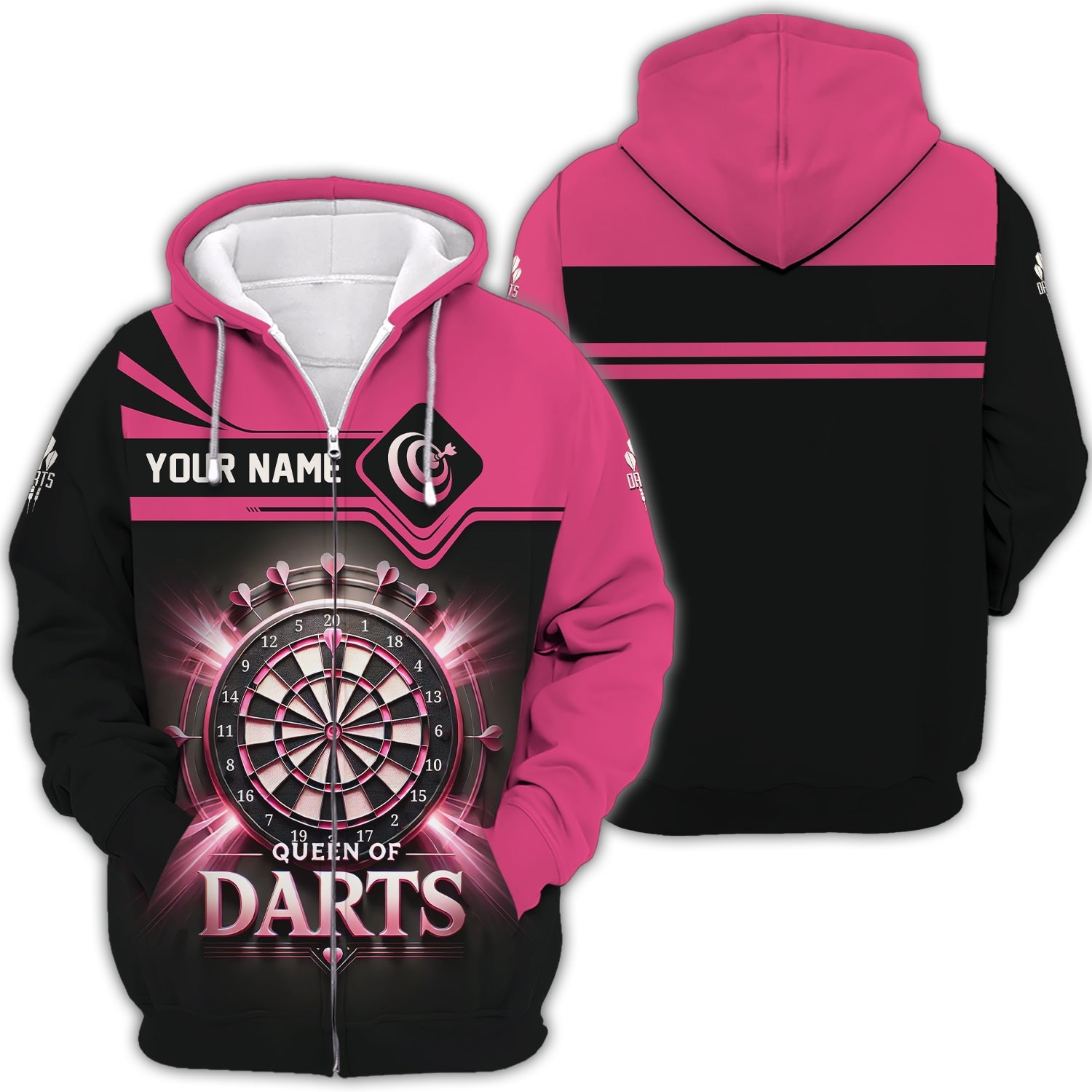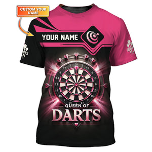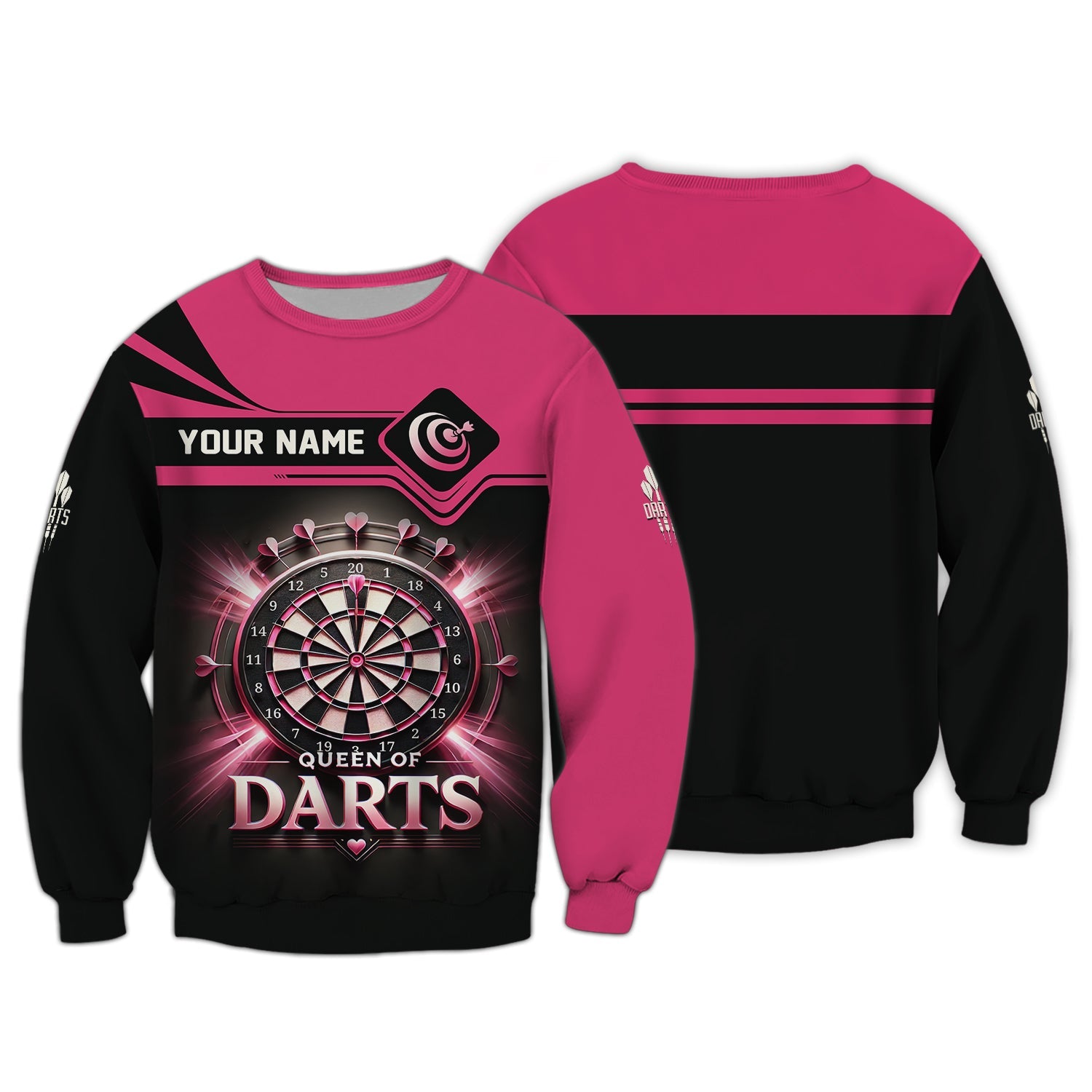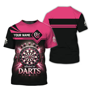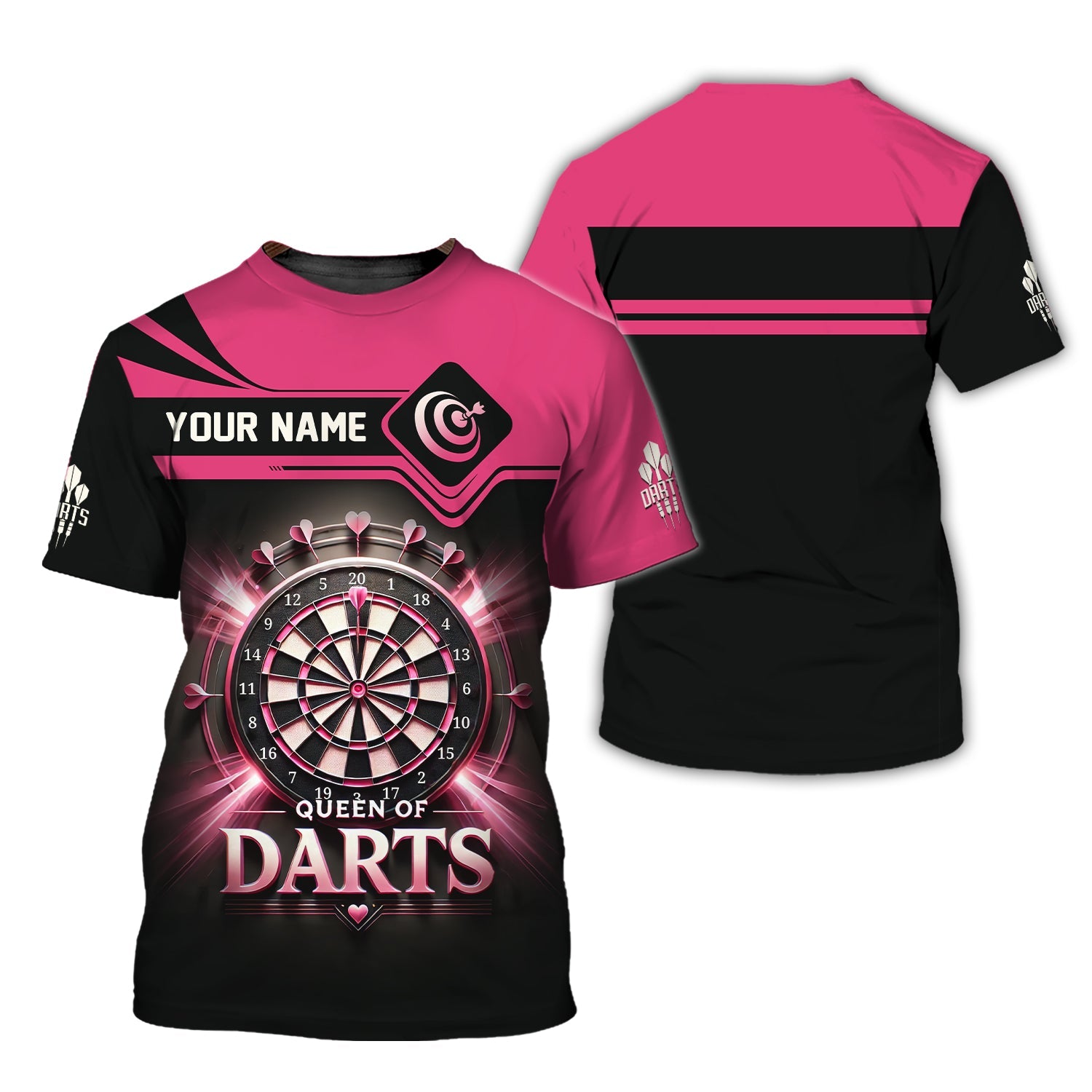 Queen Of Darts Pink Custom Name 3D T-Shirt, Polo Shirt For Darts Player, Darts Shirts, Gift For Darts Lovers