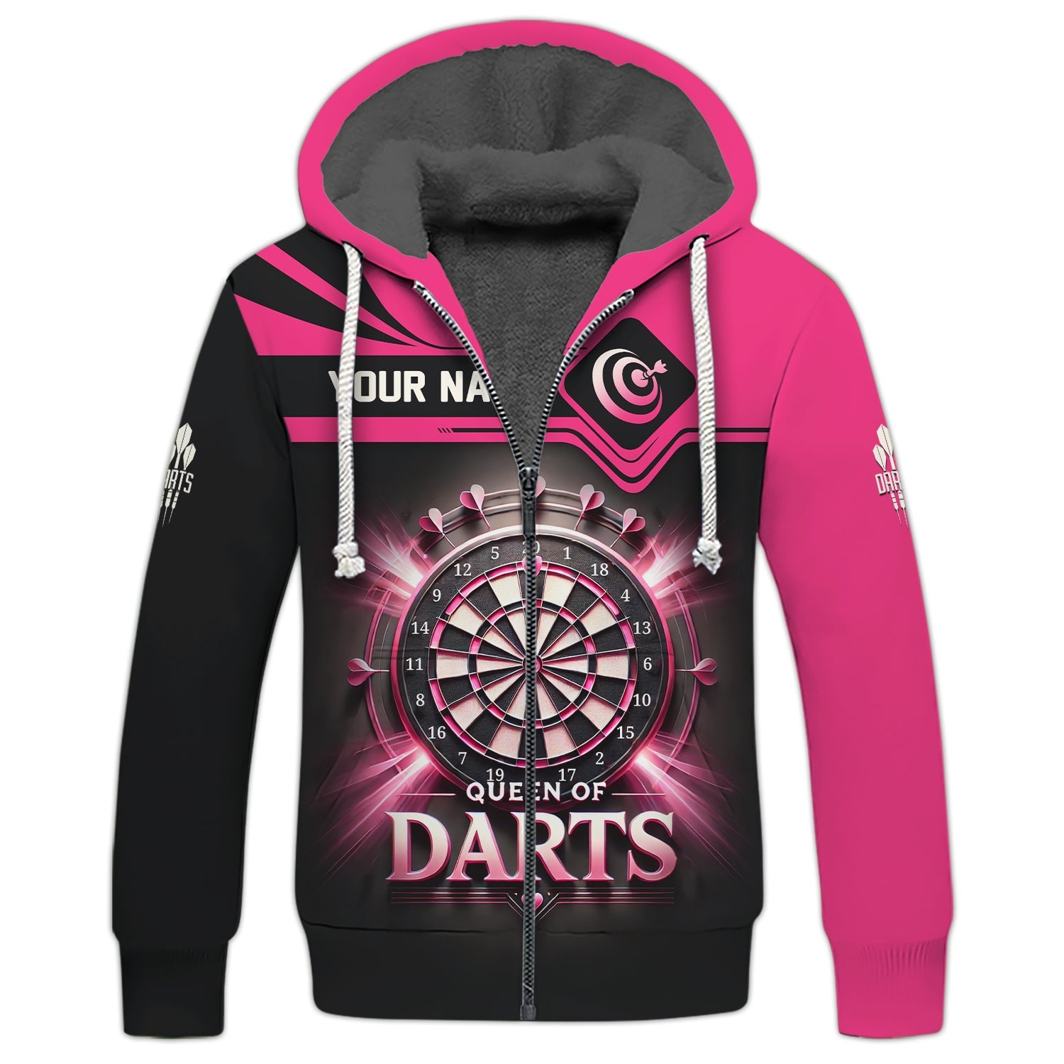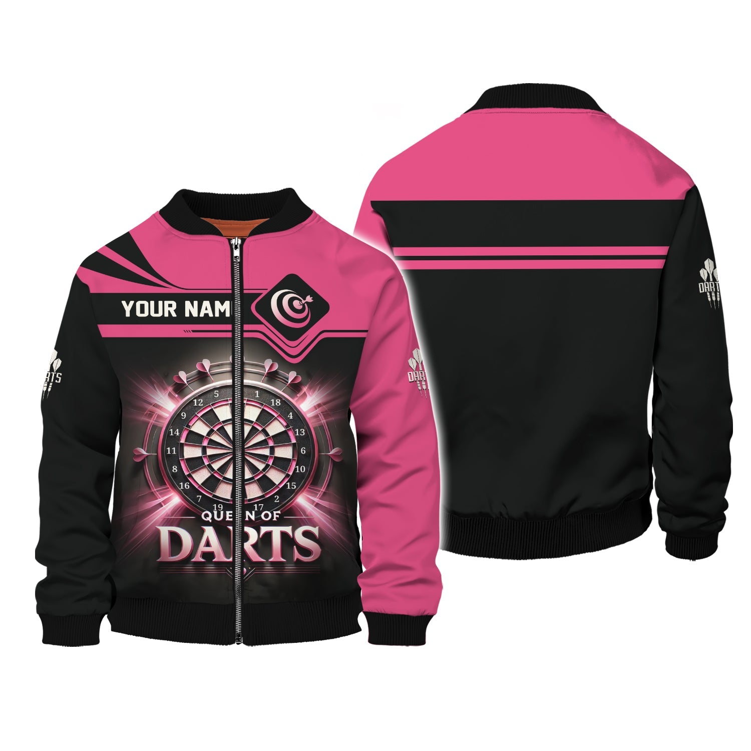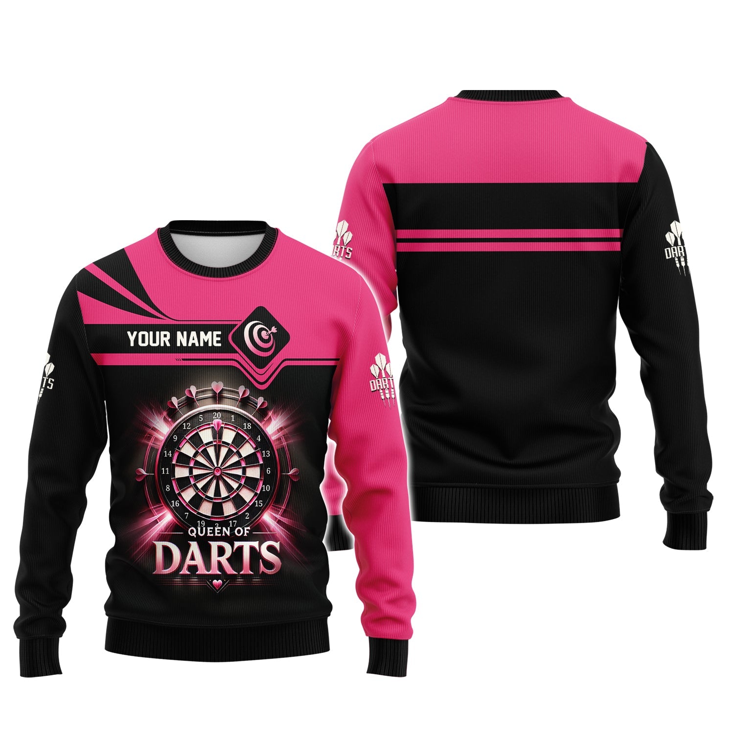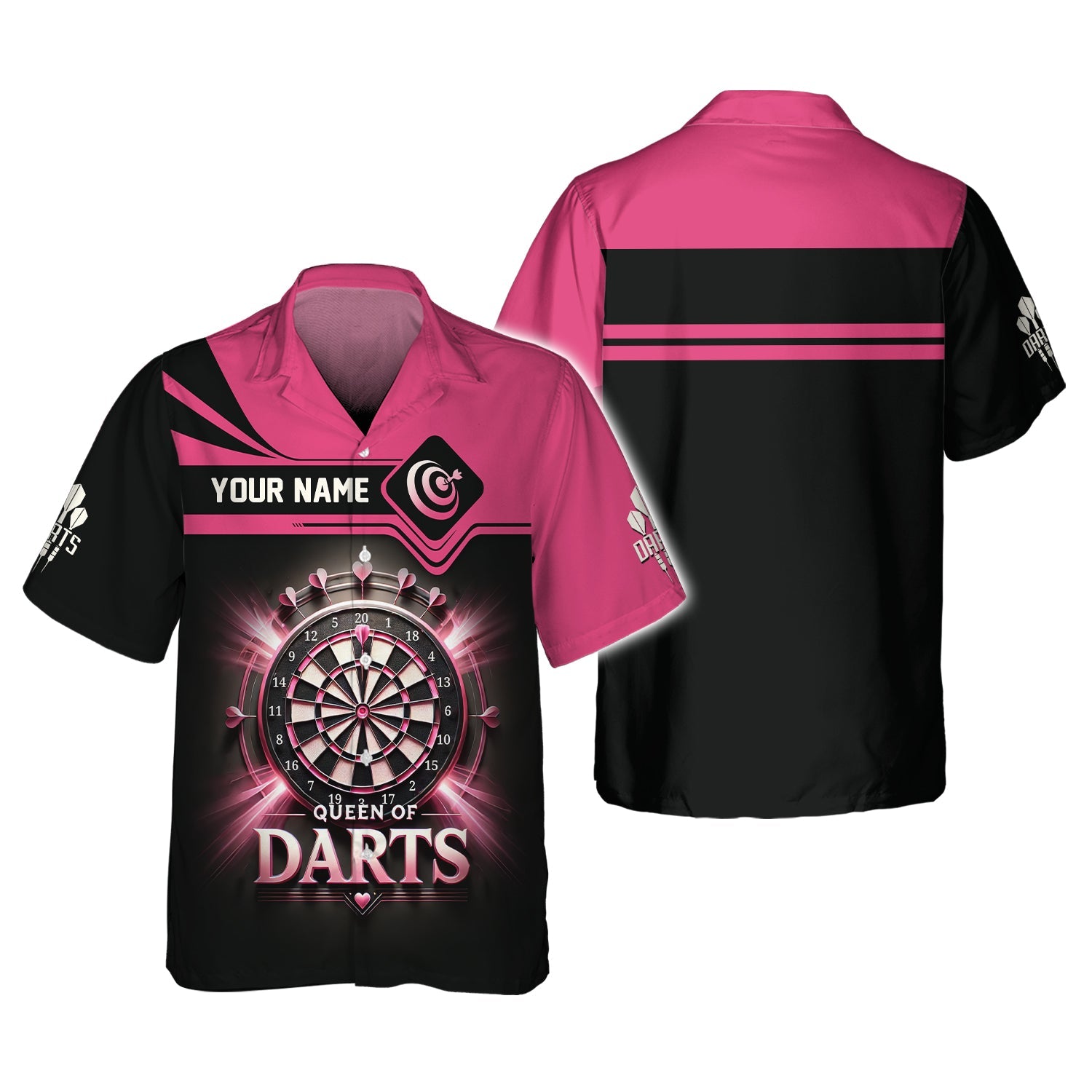 Queen Of Darts Pink Custom Name 3D T-Shirt, Polo Shirt For Darts Player, Darts Shirts, Gift For Darts Lovers