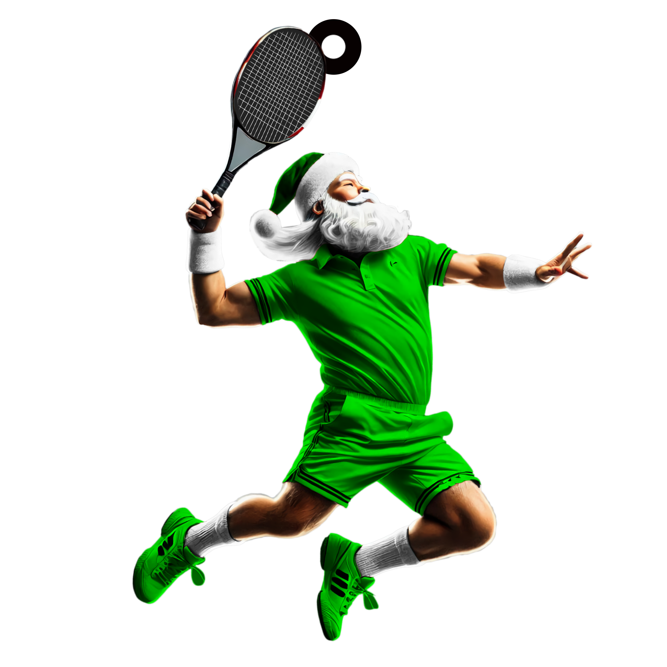 - 🎅 Dynamic Santa Design: Features Santa in full action, rocking tennis gear in vibrant color options like red, green, blue, and more.