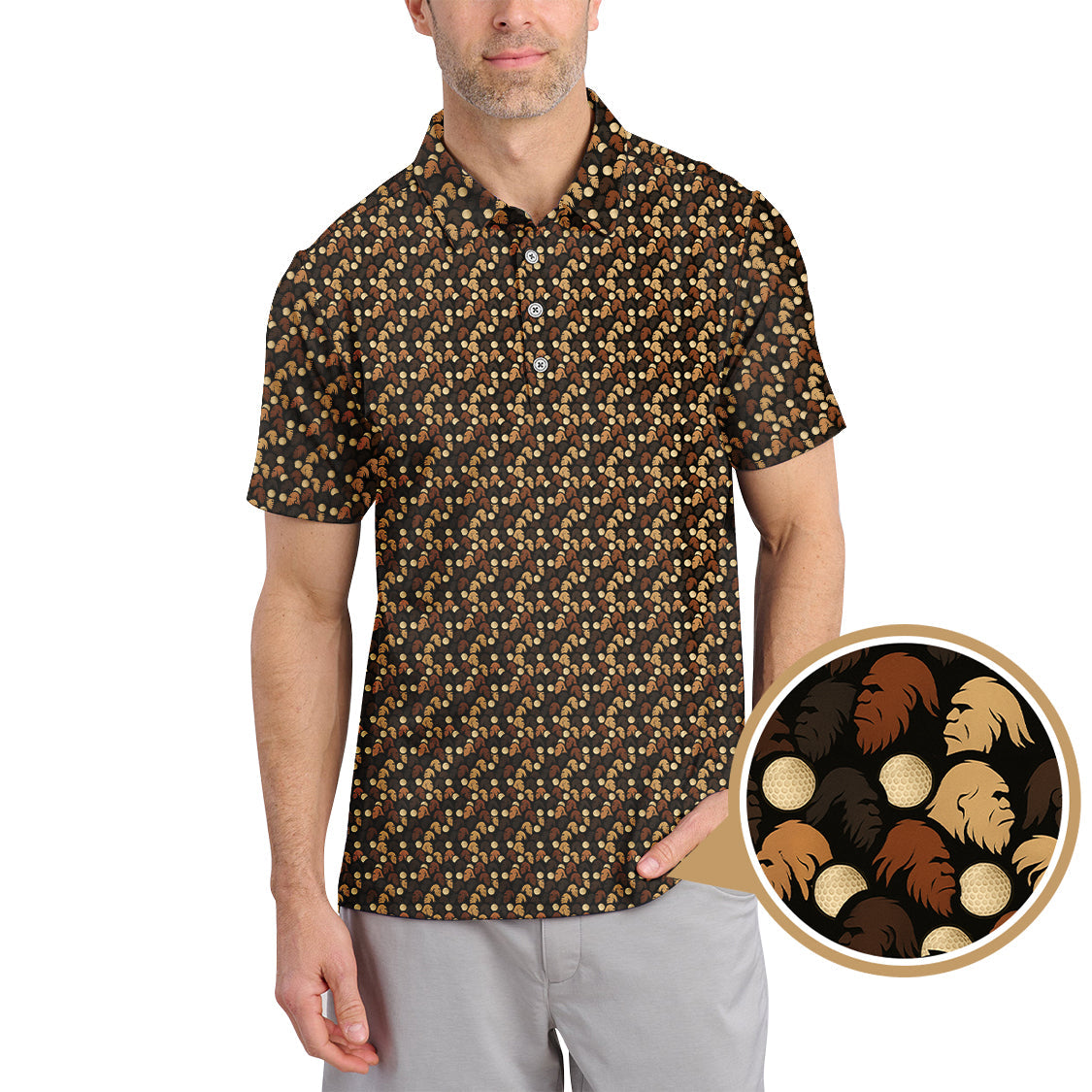 Sasquatch Pattern Golf Shirt, Bigfoot Golf Shirt For Golfer, Crazy Golf Shirt For Men