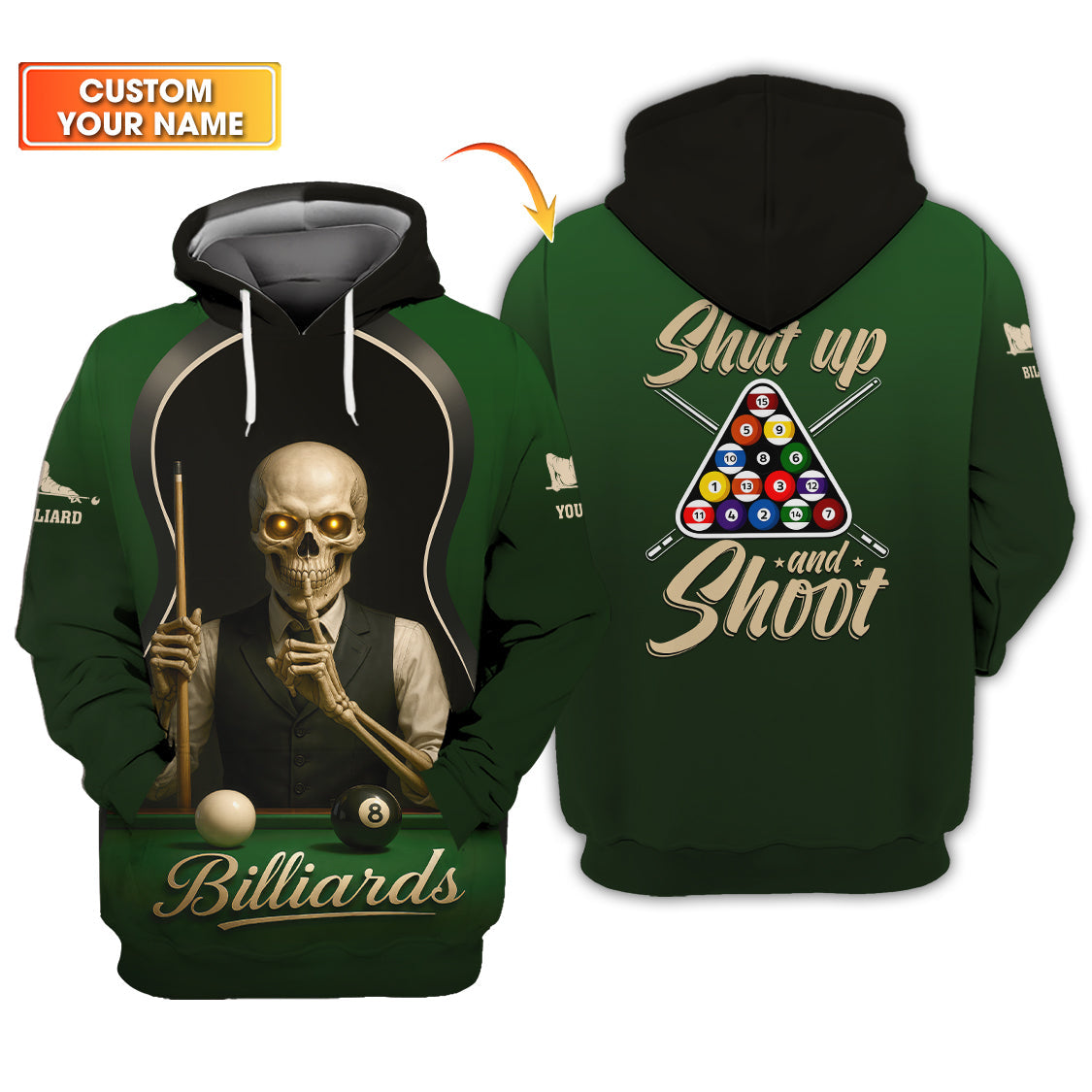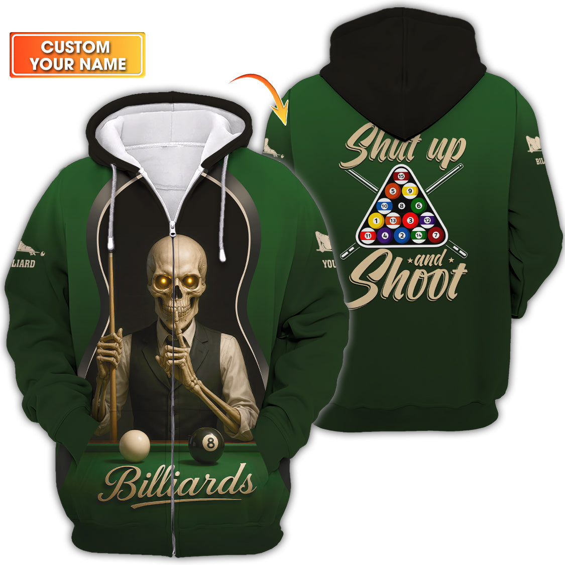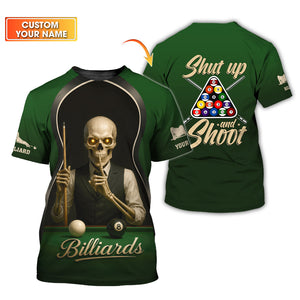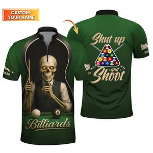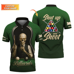 Shut Up and Shoot Billiards Shirt For Men – Custom Skeleton Pool League Polo – Funny Cue Sports Billiards Jersey - Father’s Day Gift Idea