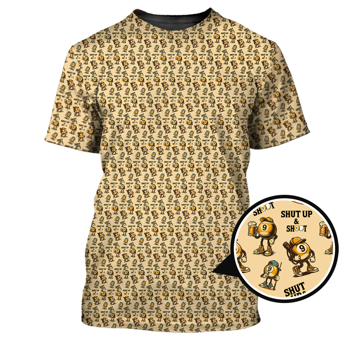 Shut Up & Shoot Pattern Billiard Shirt - 9 Ball Shirts For Player - Billiard Jersey For Men
